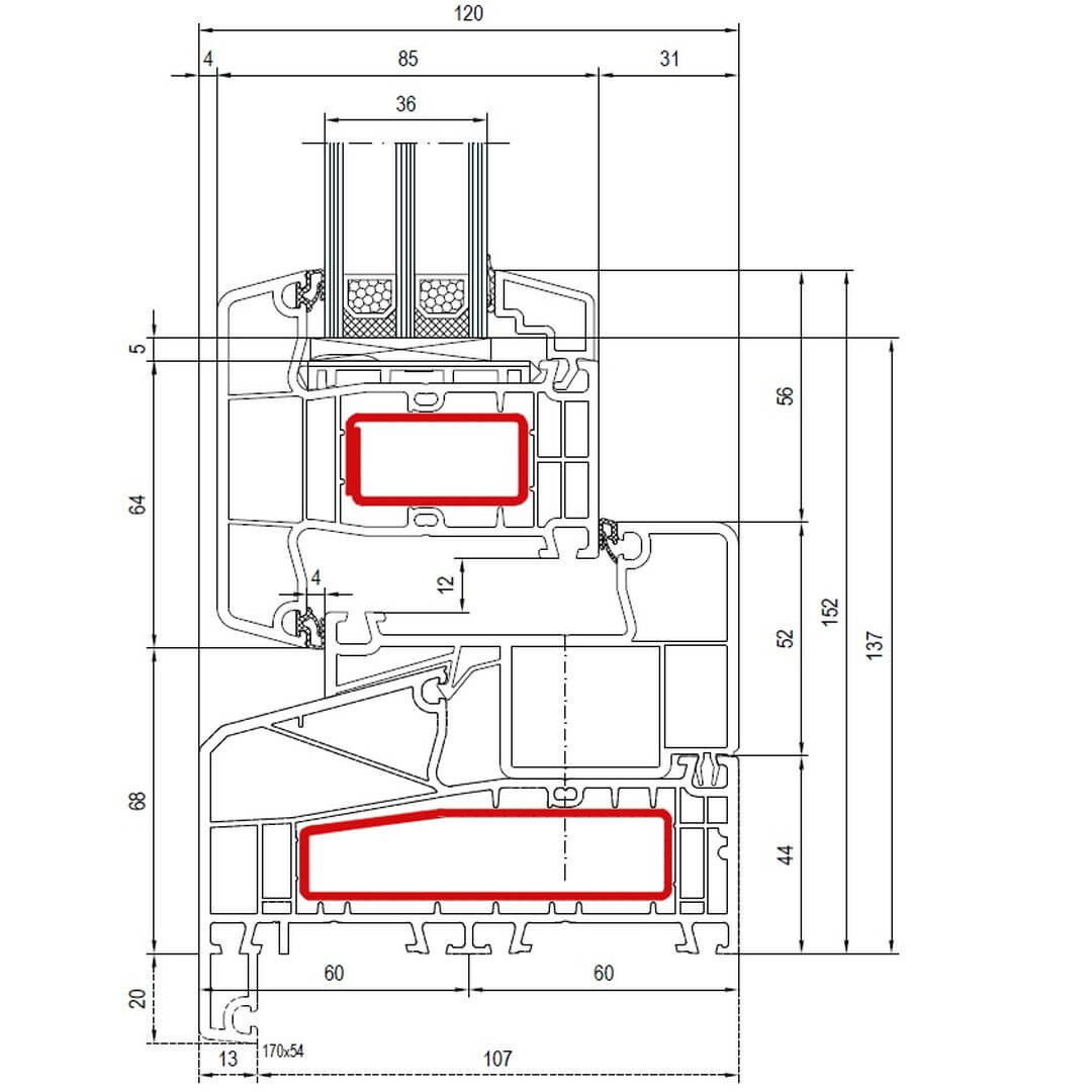 IDEAL 7000 NL Fenster Classic-Line 113mm - 170x53 - 170x20