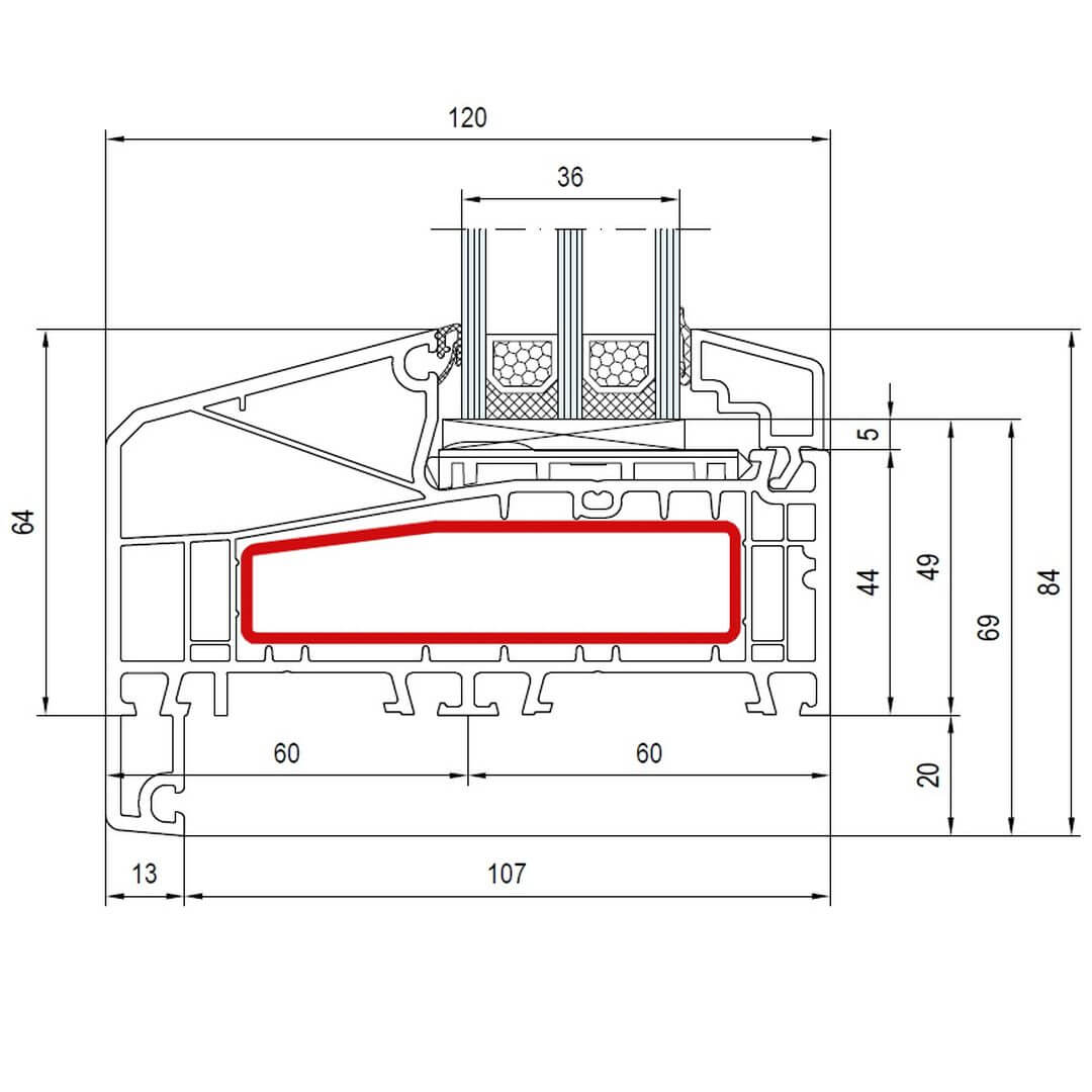 IDEAL 7000 Stulp 67mm Terrassentür innen öffnend Classic-Line- 170x64 170x30