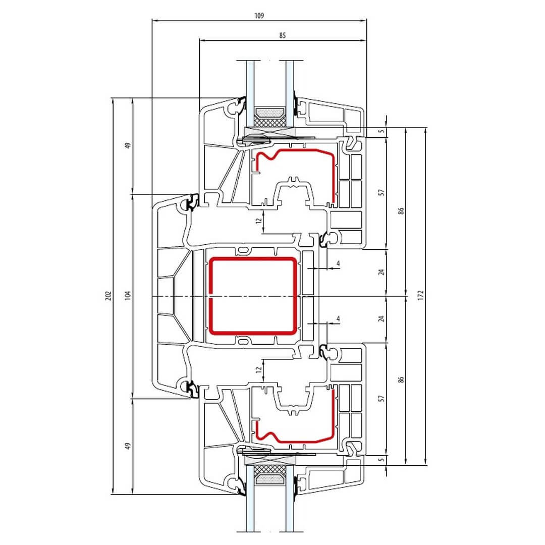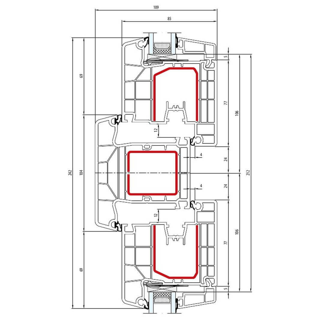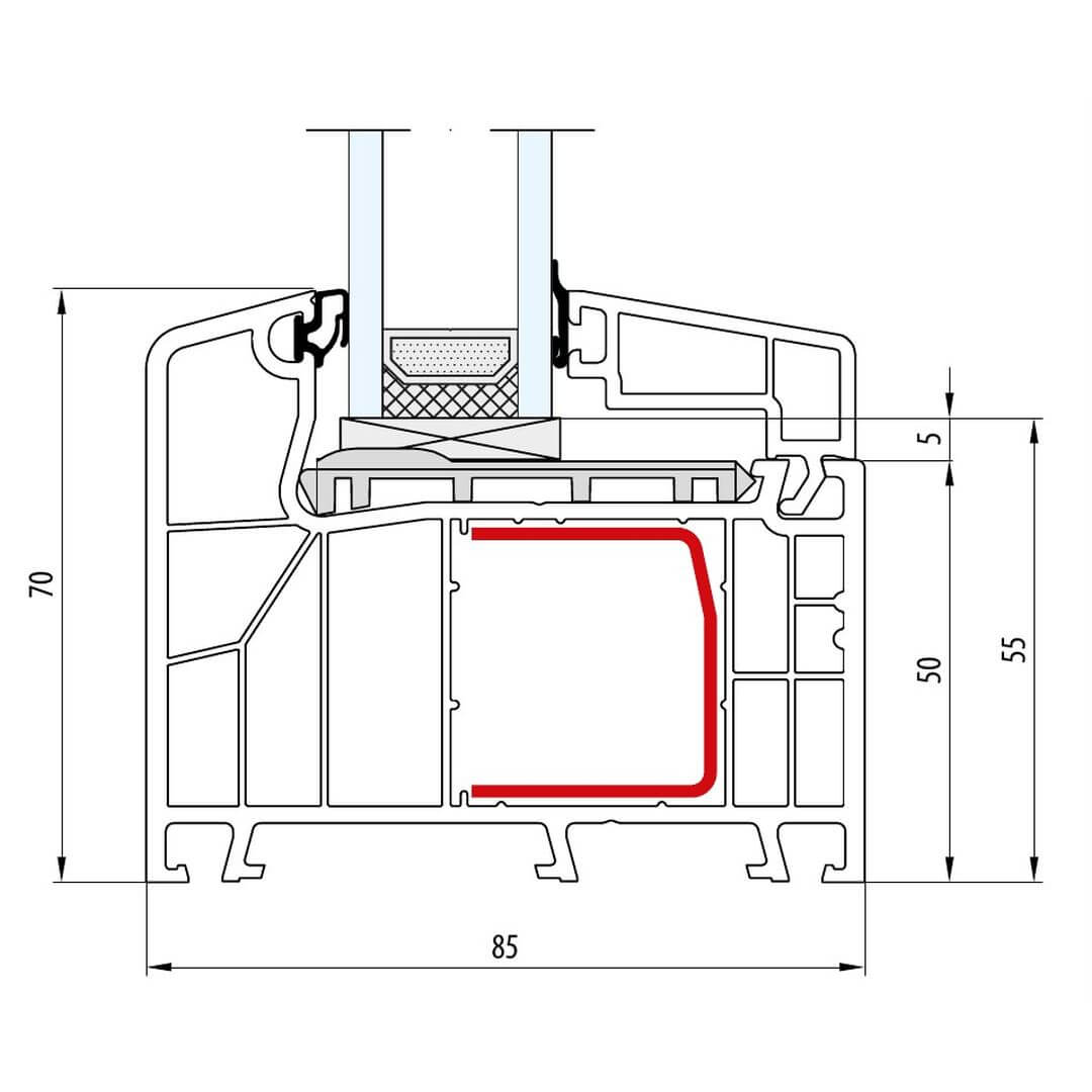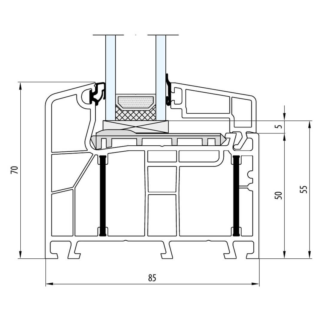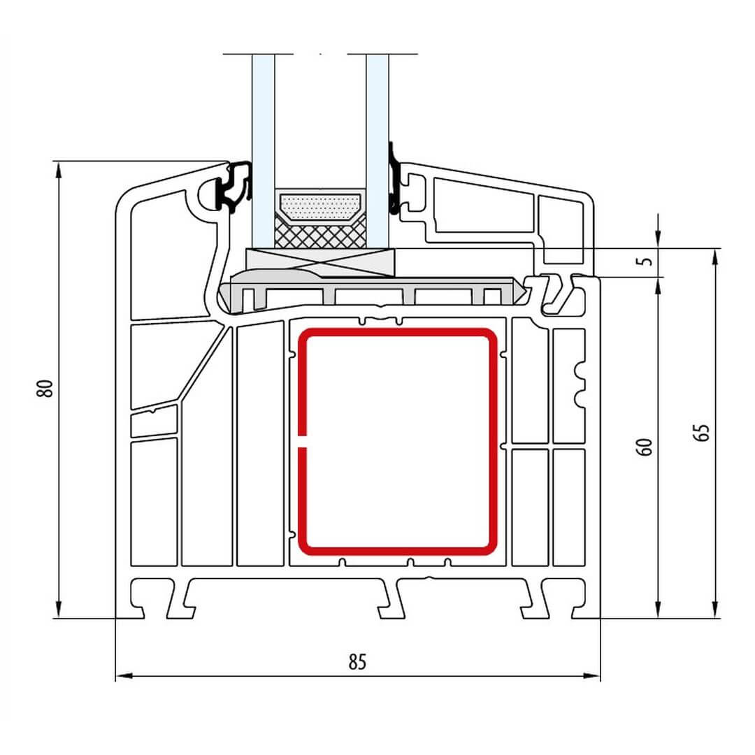 Kunststofffenster IDEAL 8000 besitzen eine Bautiefe (Rahmen) von 85mm.