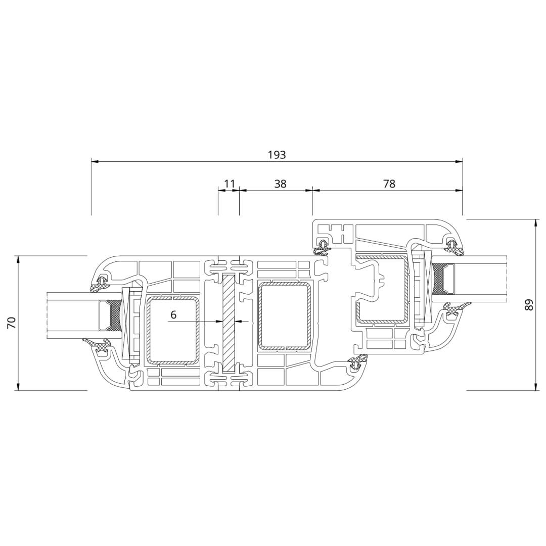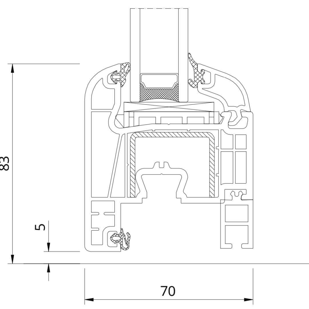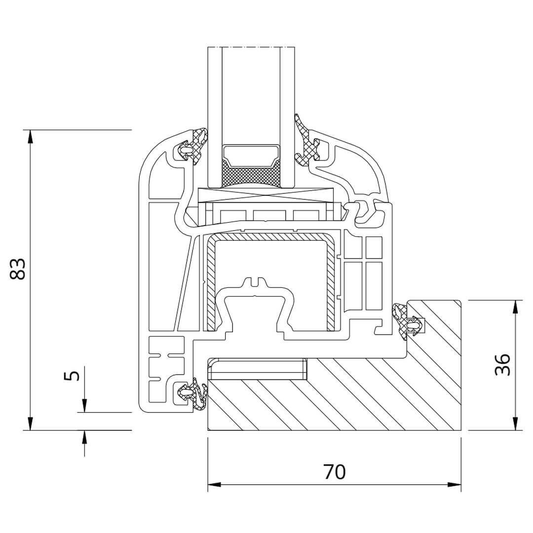 Kunststofffenster Iglo Premier besitzen eine Bautiefe (Rahmen) von 70mm.
