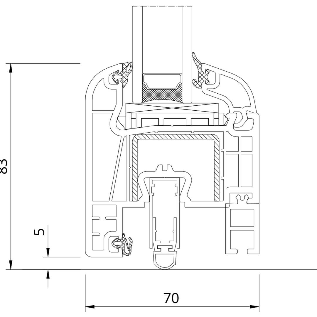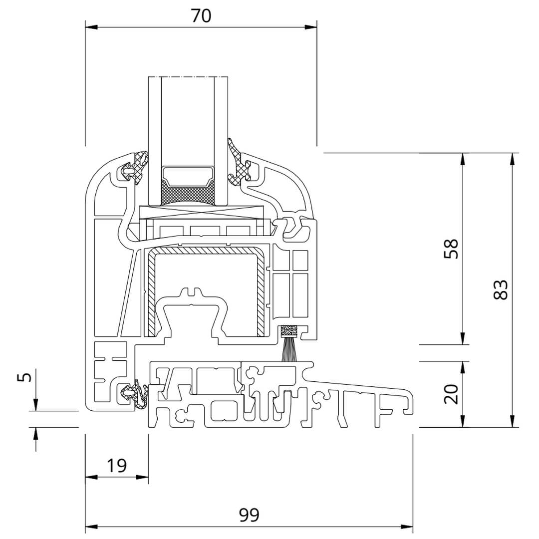 Kunststofffenster Iglo 5 besitzen eine Bautiefe (Rahmen) von 70mm.
