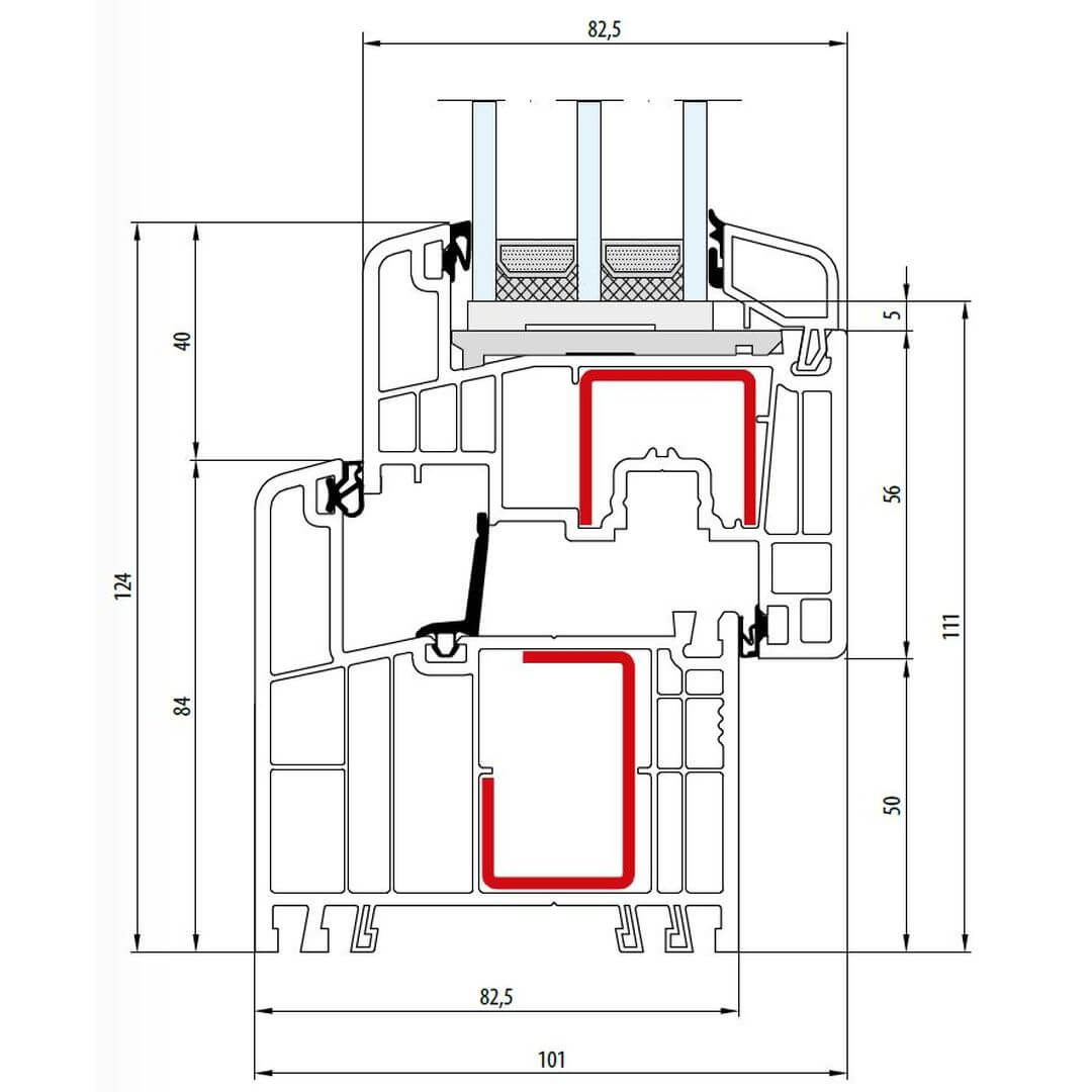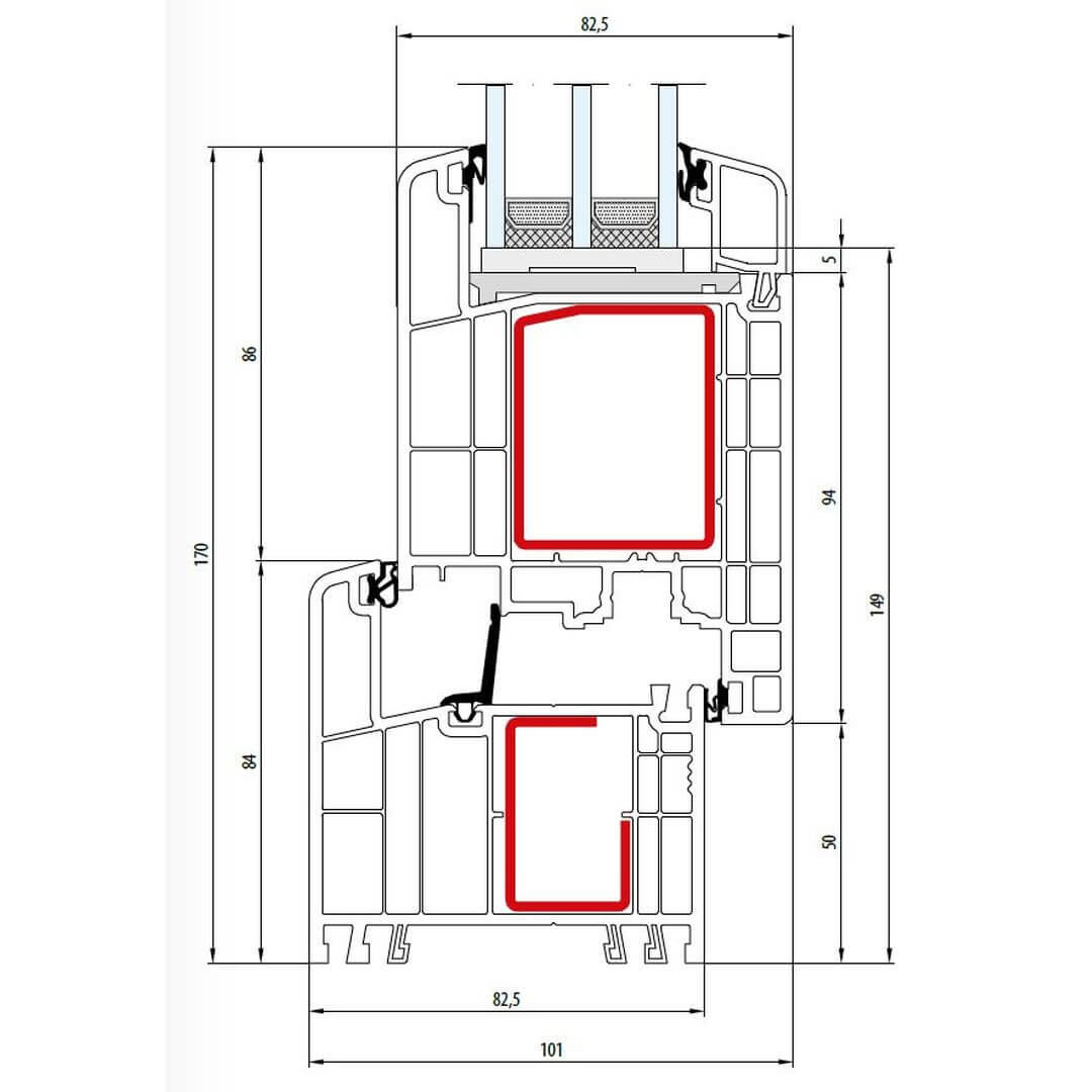Gealan S 9000 Festverglasung 84mm - 6016