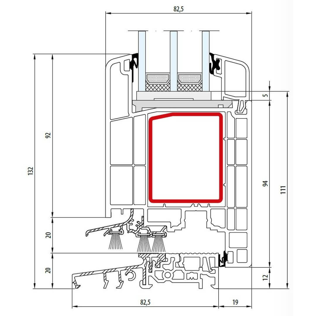 Gealan S 9000 Pfosten 92mm Terrassenflügel innen öffnend Classic-Line - 6050 - 6017