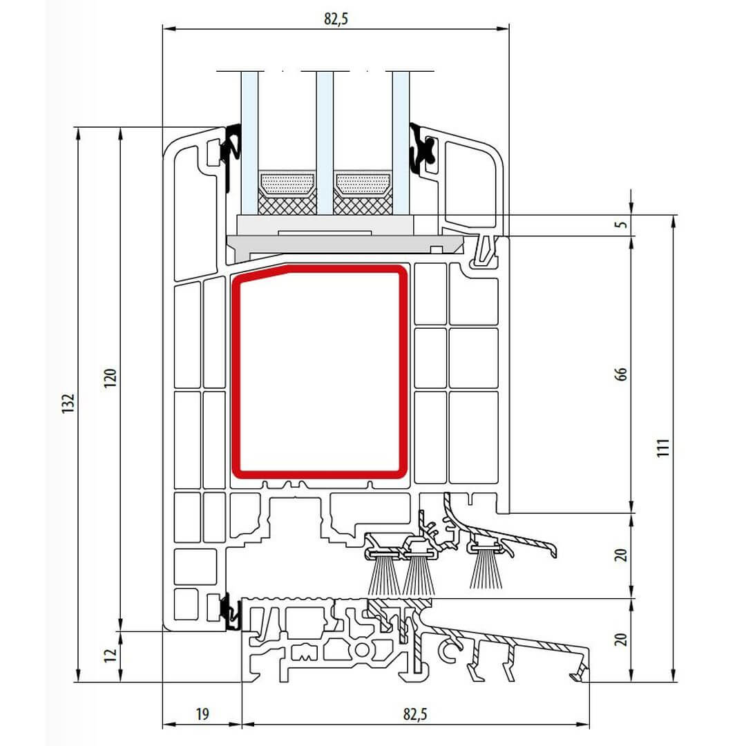 Gealan S 9000 Stulp 74mm Terrassenflügel außen öffnend Classic-Line - 6012 - 6033