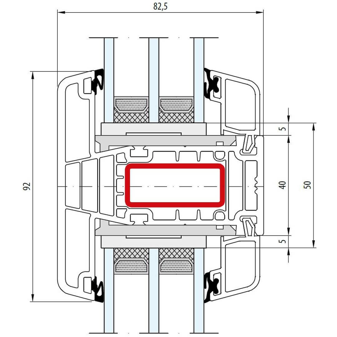 Gealan S 9000 Pfosten 92mm Fenster Classic-Line 74mm mit STV - 6050 - 6079