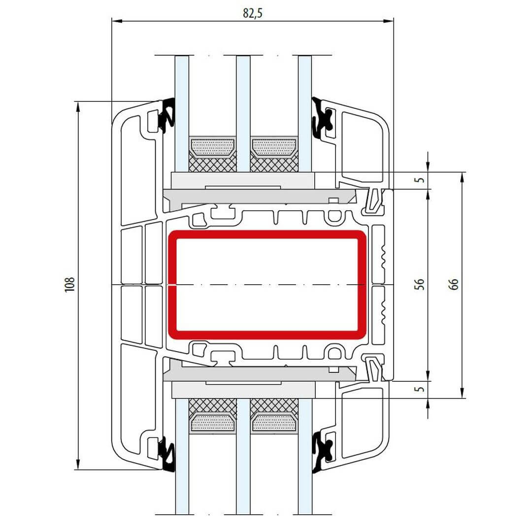 Gealan S 9000 Stulp 56mm Fenster Classic-Line 74mm - 6020 - 6079