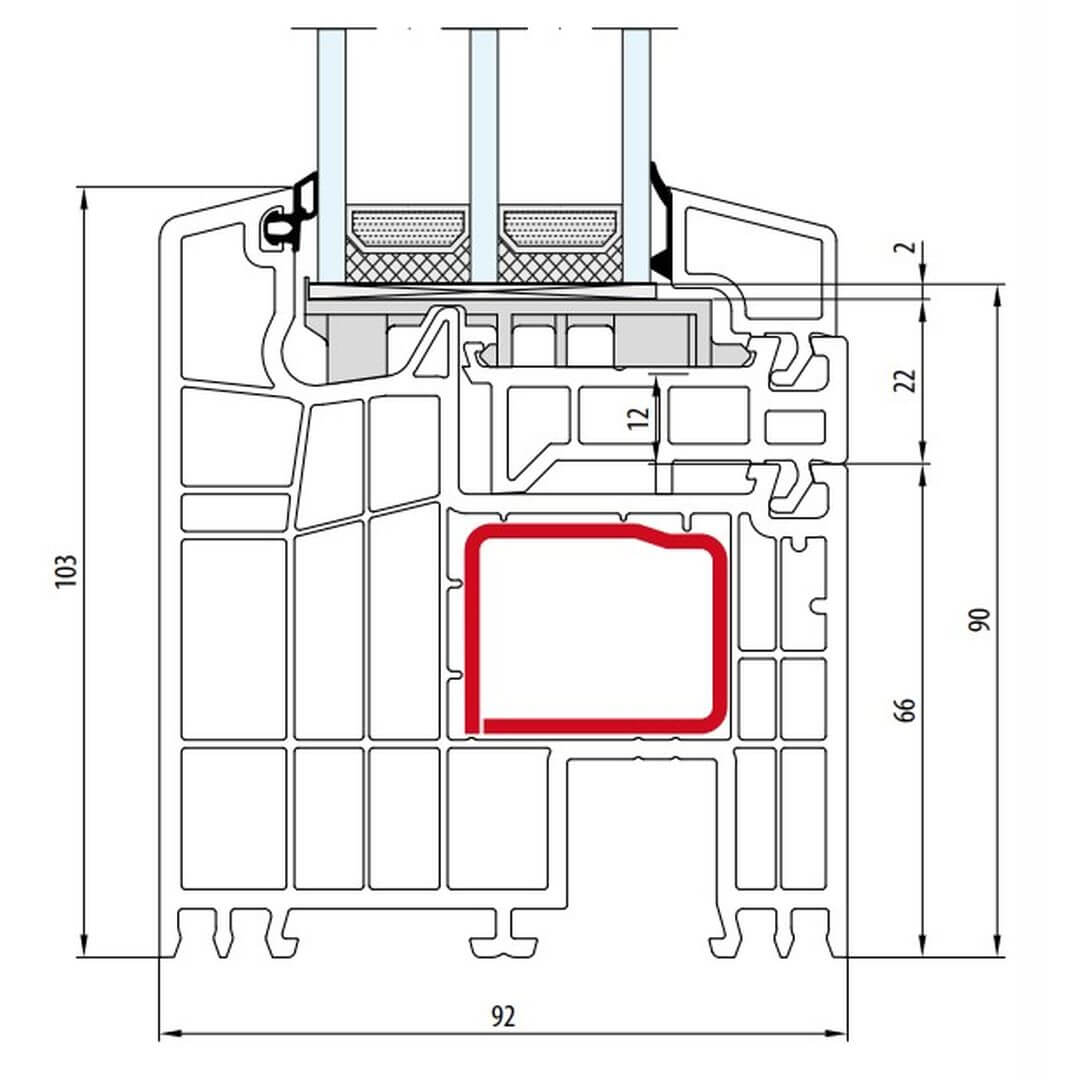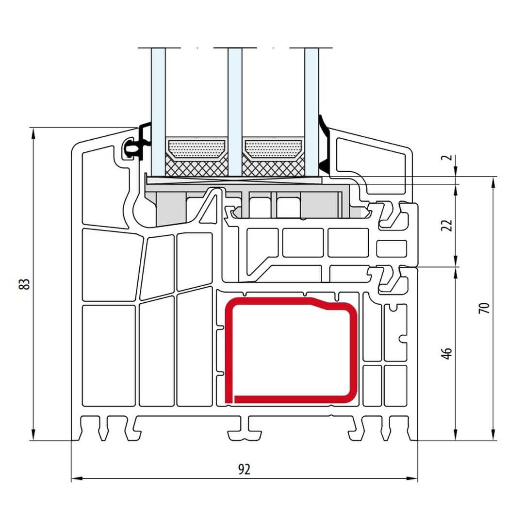 Kunststofffenster bluEvolution 82 besitzen eine Bautiefe (Rahmen) von 82mm.