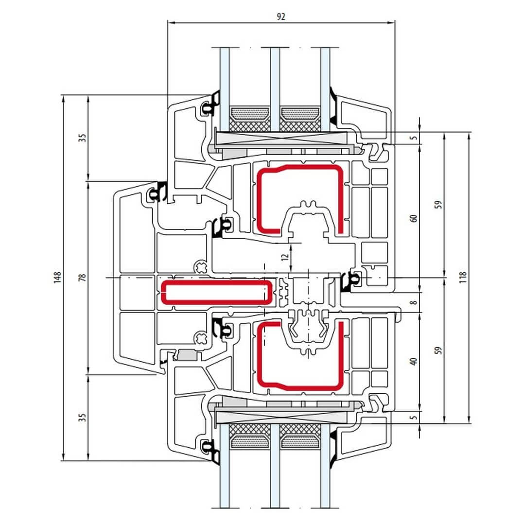Kunststofffensterprofil Salamander Brügmann bluEvolution 92 Querschnitte