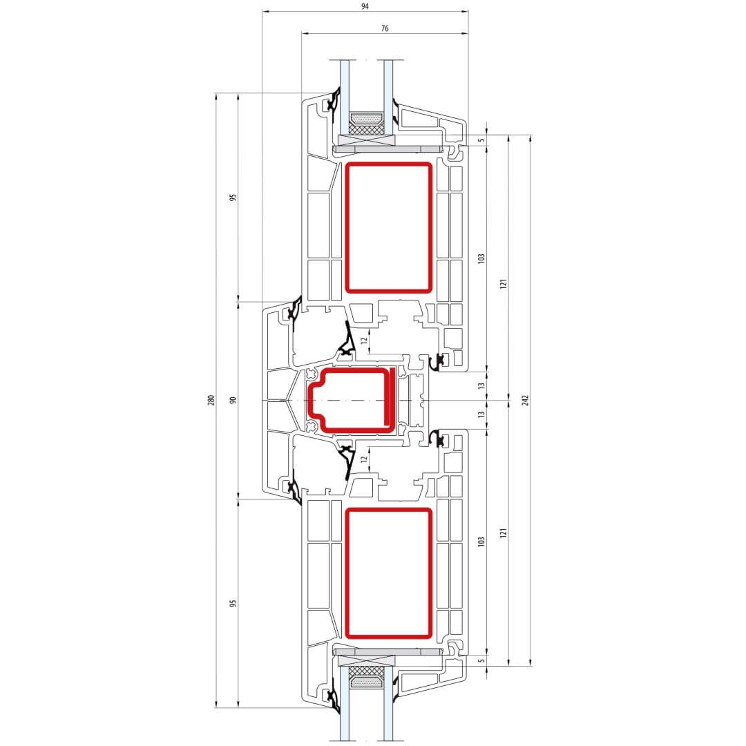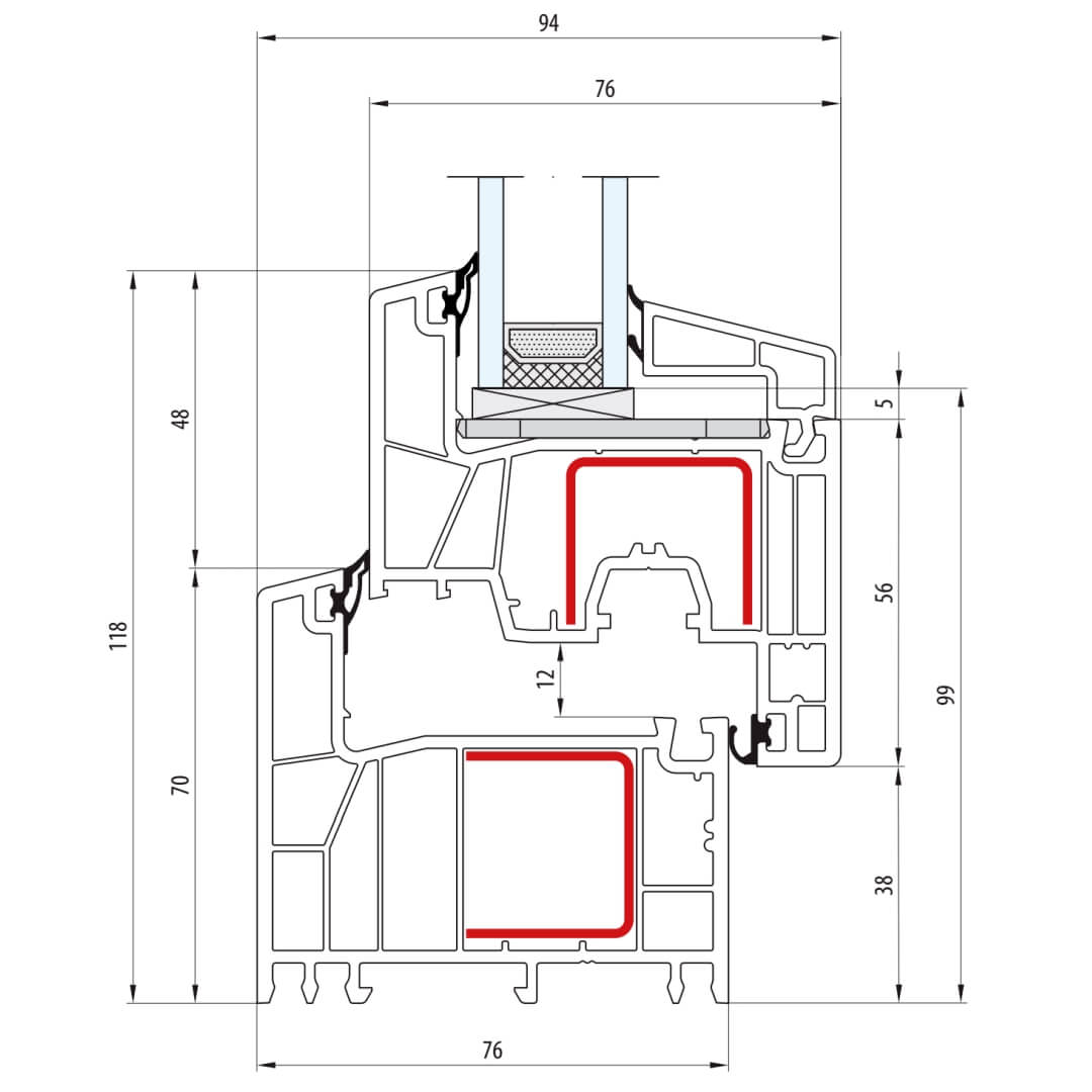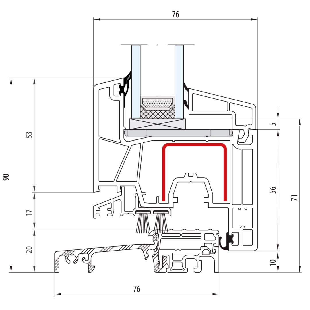 greenEvolution 76 MD Pfosten 90mm mit Verstärkung Fenster RL - 762008 - 761004