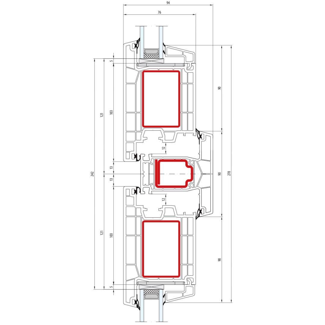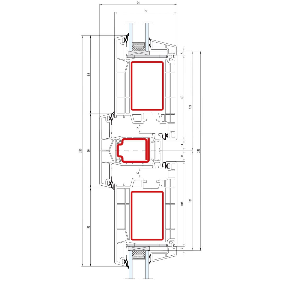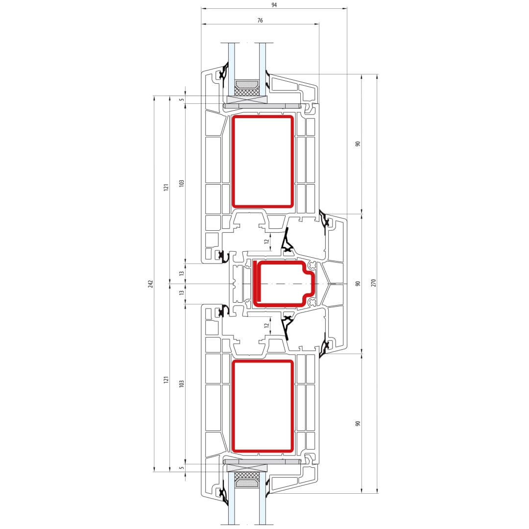 greenEvolution 76 MD Pfosten 90mm mit Verstärkung Fenster RL - 762008 - 761004
