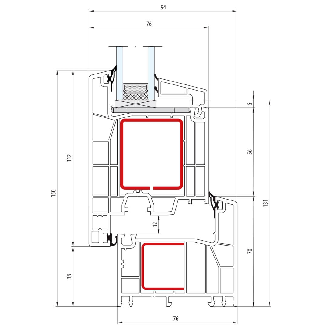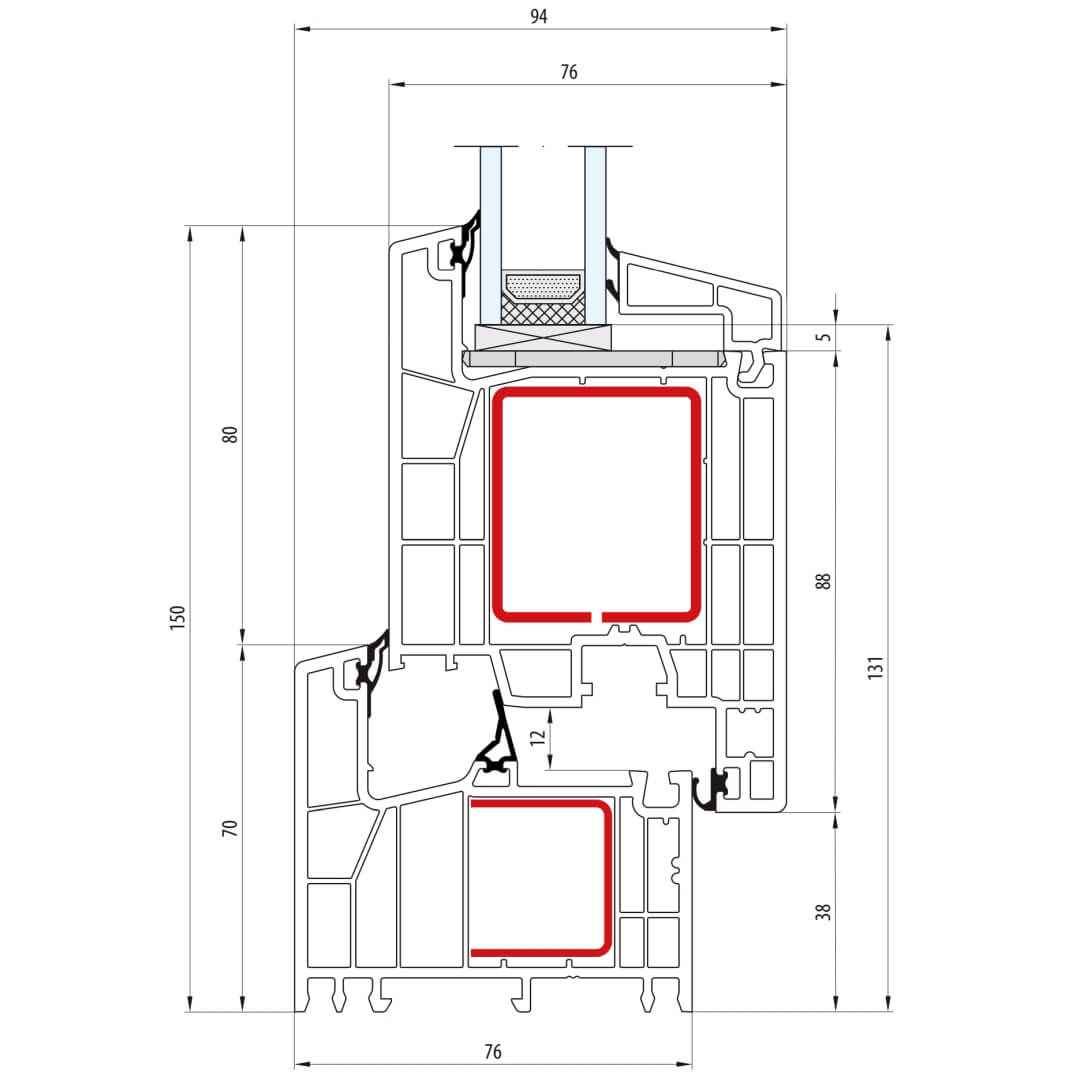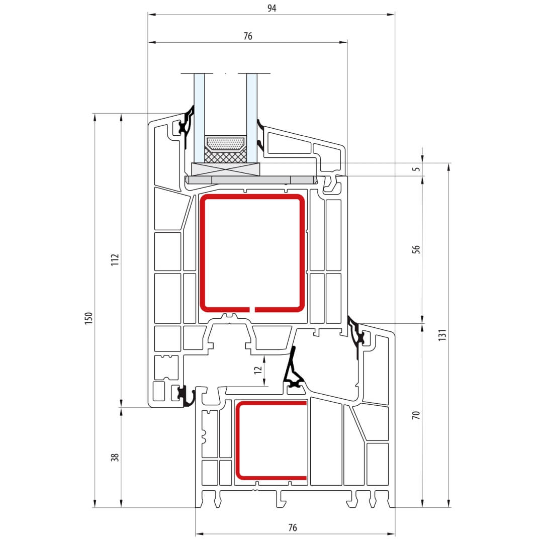 Kunststofffenster greenEvolution 76 mit Stulp 51mm (Sonderkonstruktionen auf Anfrage)