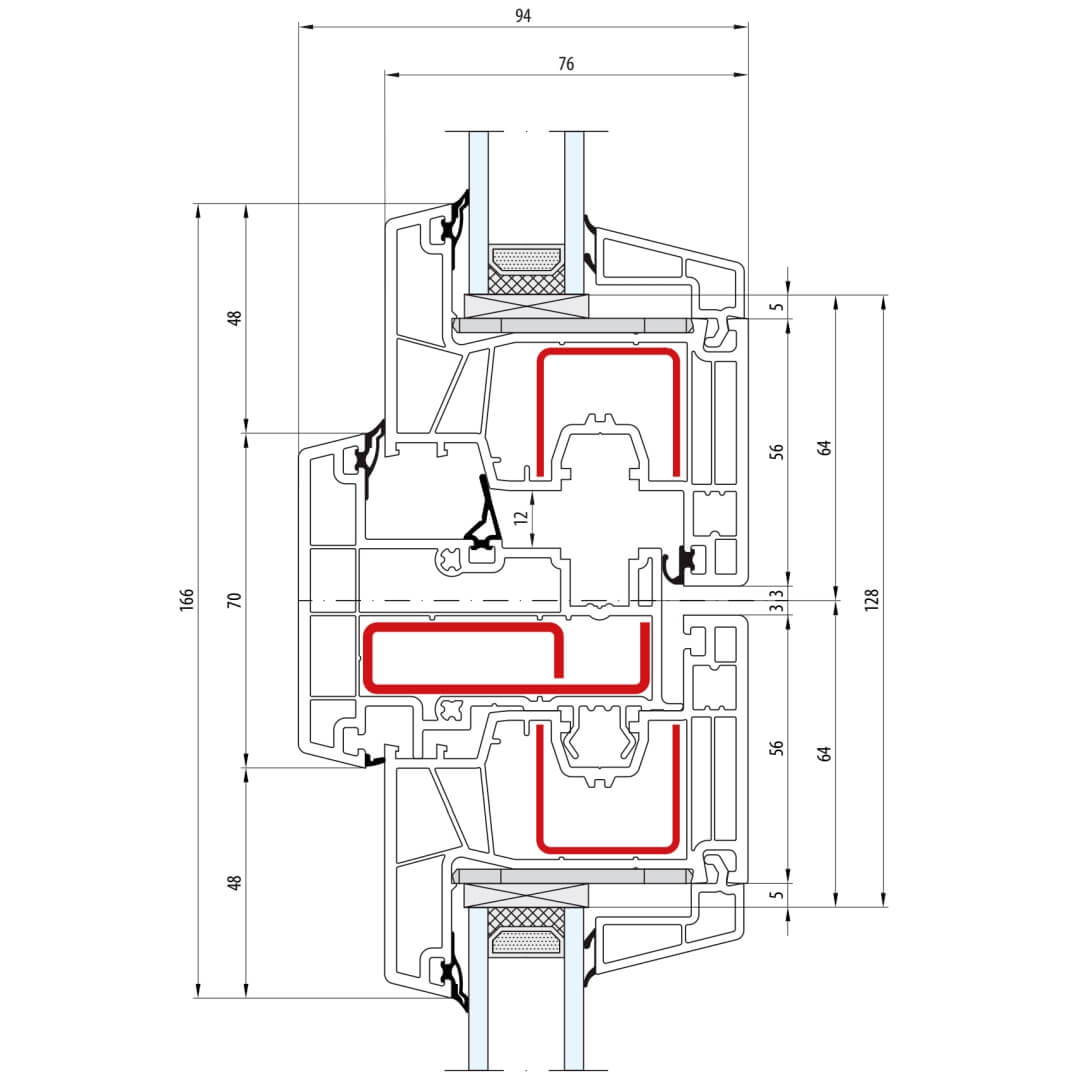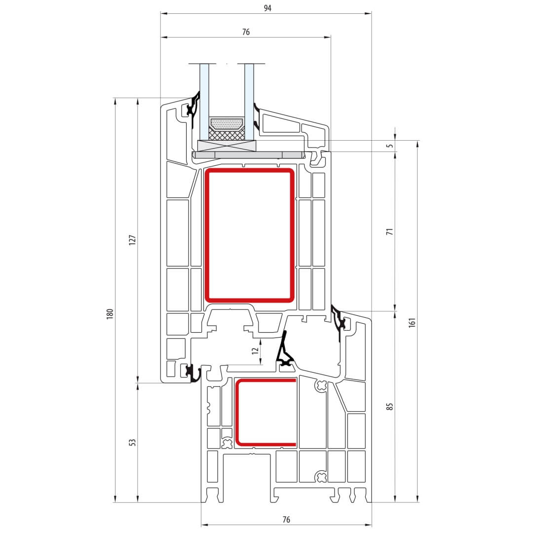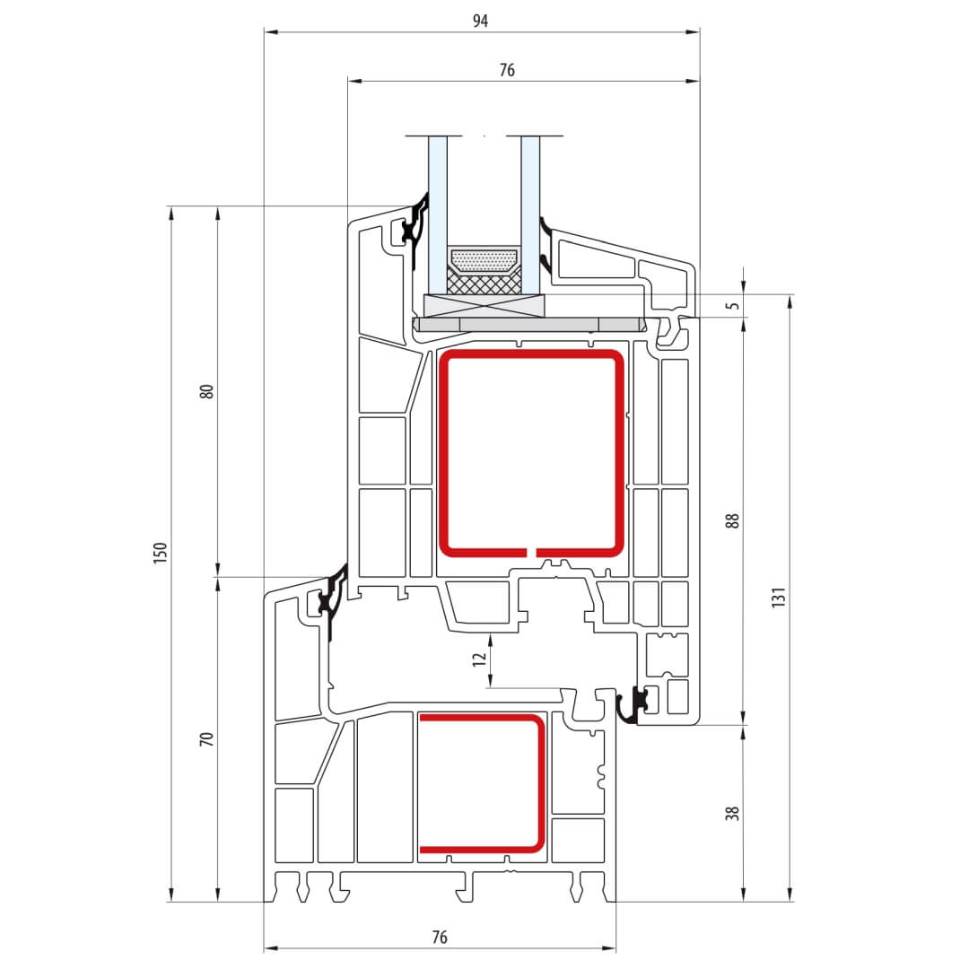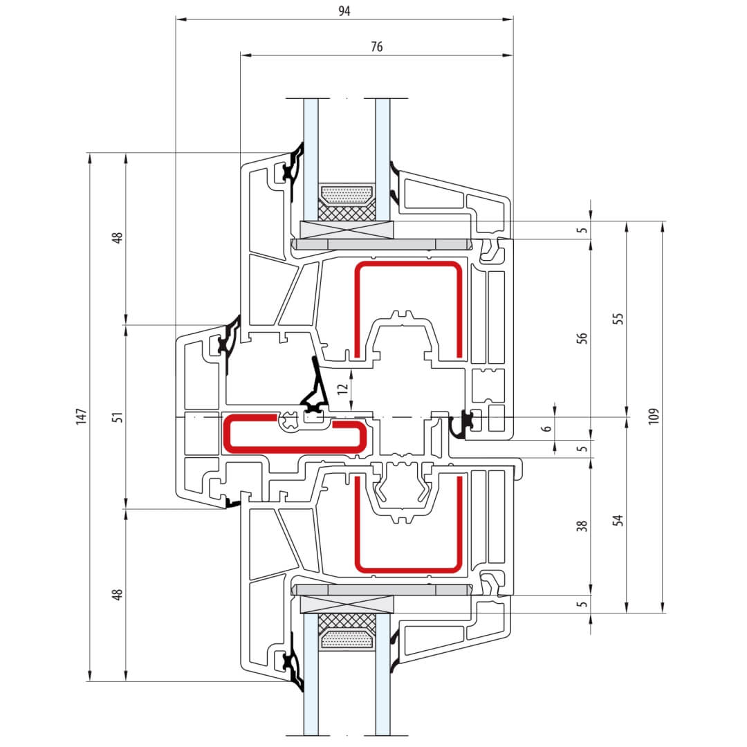 Kunststofffenster greenEvolution 76 mit Stulp 51mm (Sonderkonstruktionen auf Anfrage)