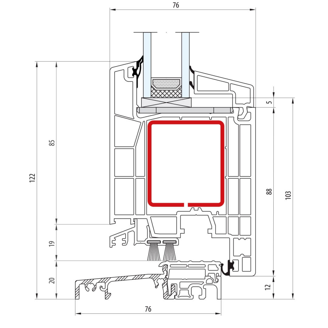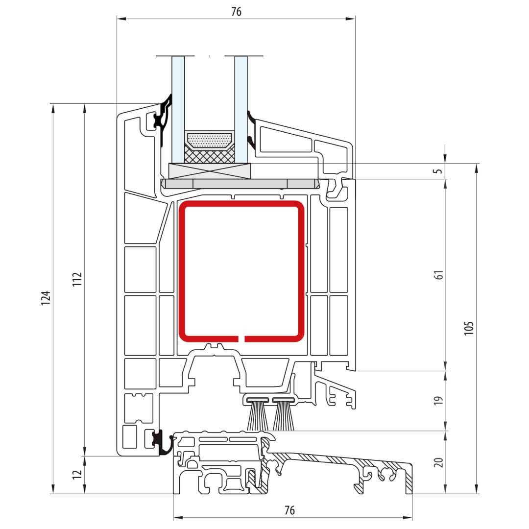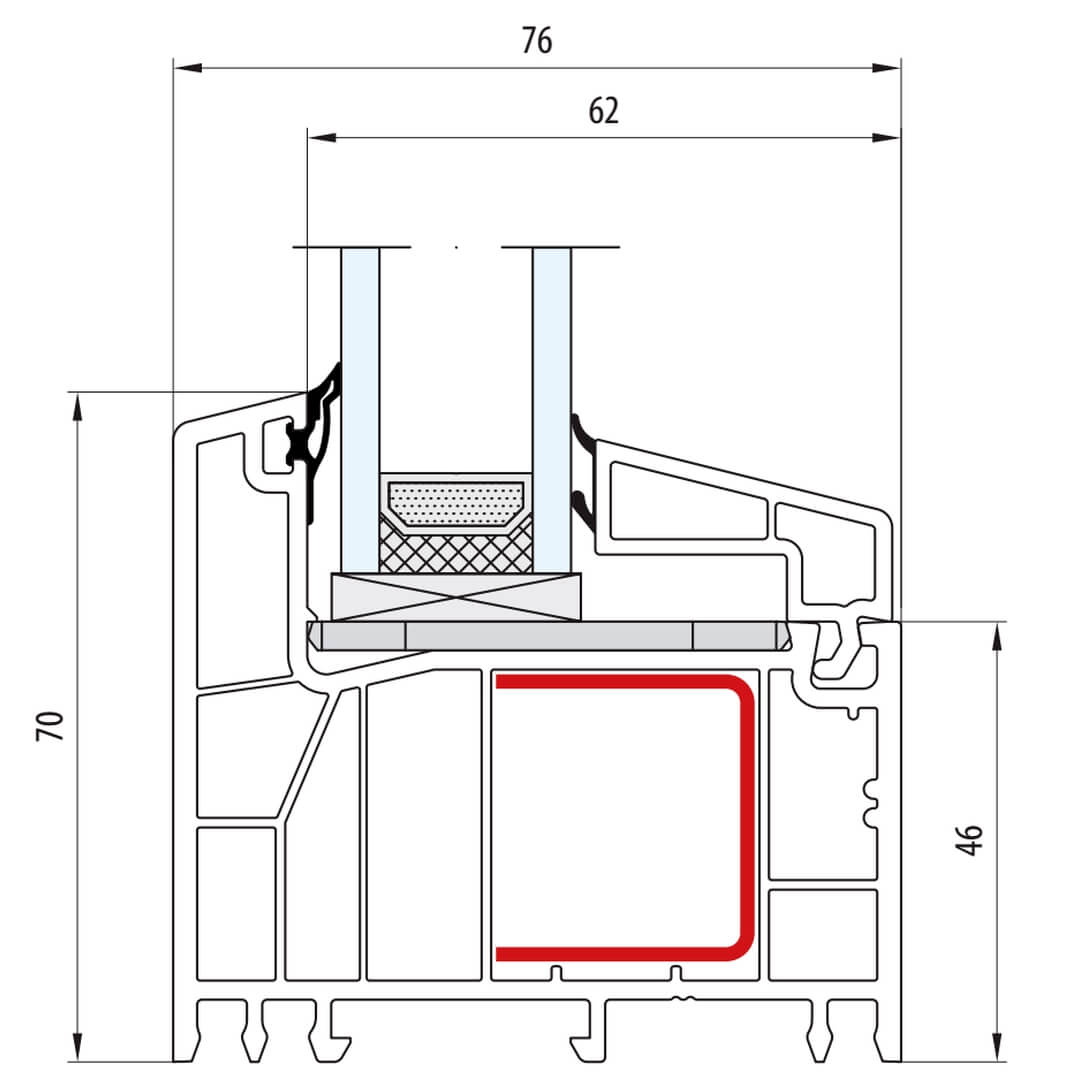 Kunststofffensterprofil greenEvolution 76 Querschnitte