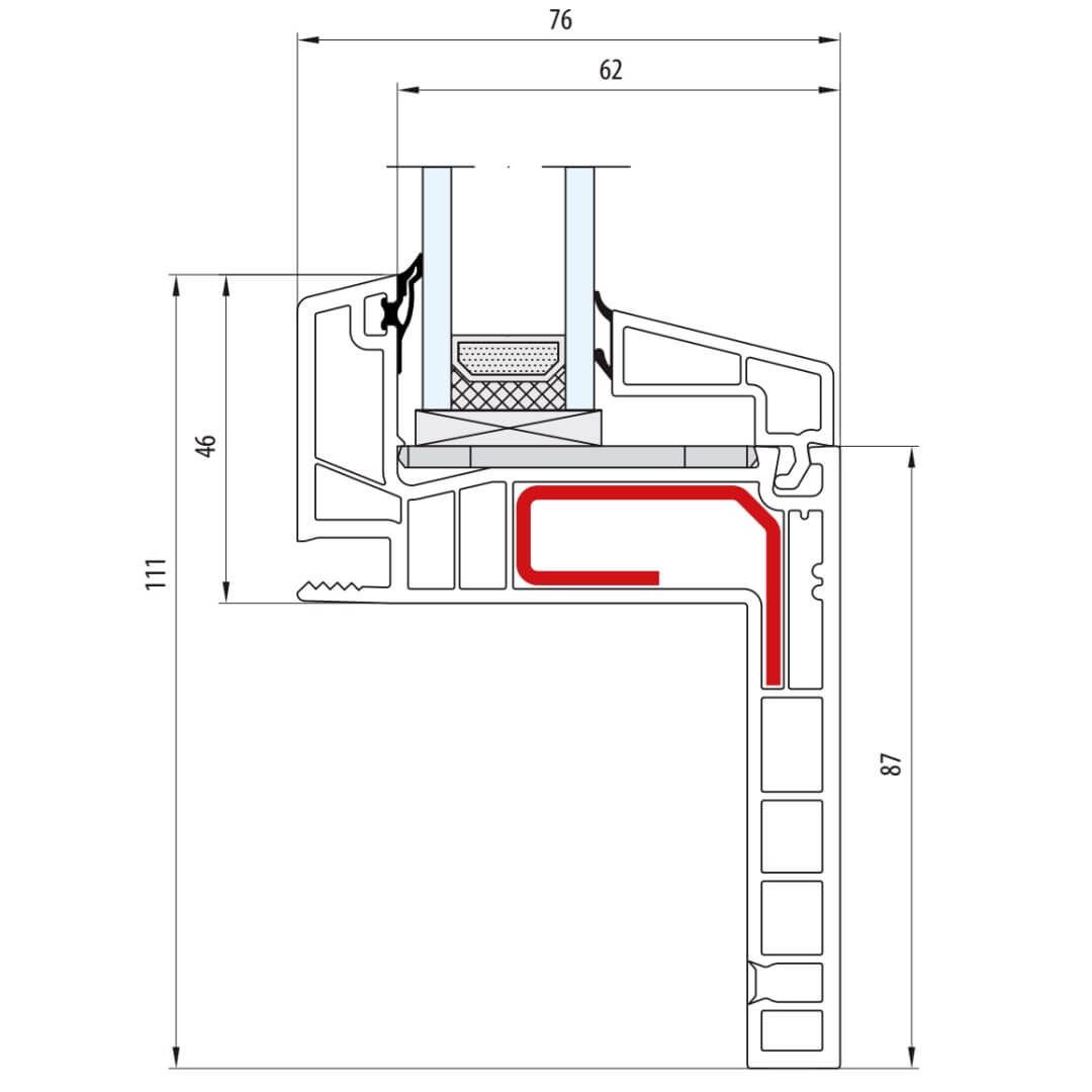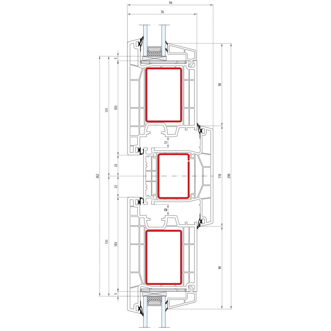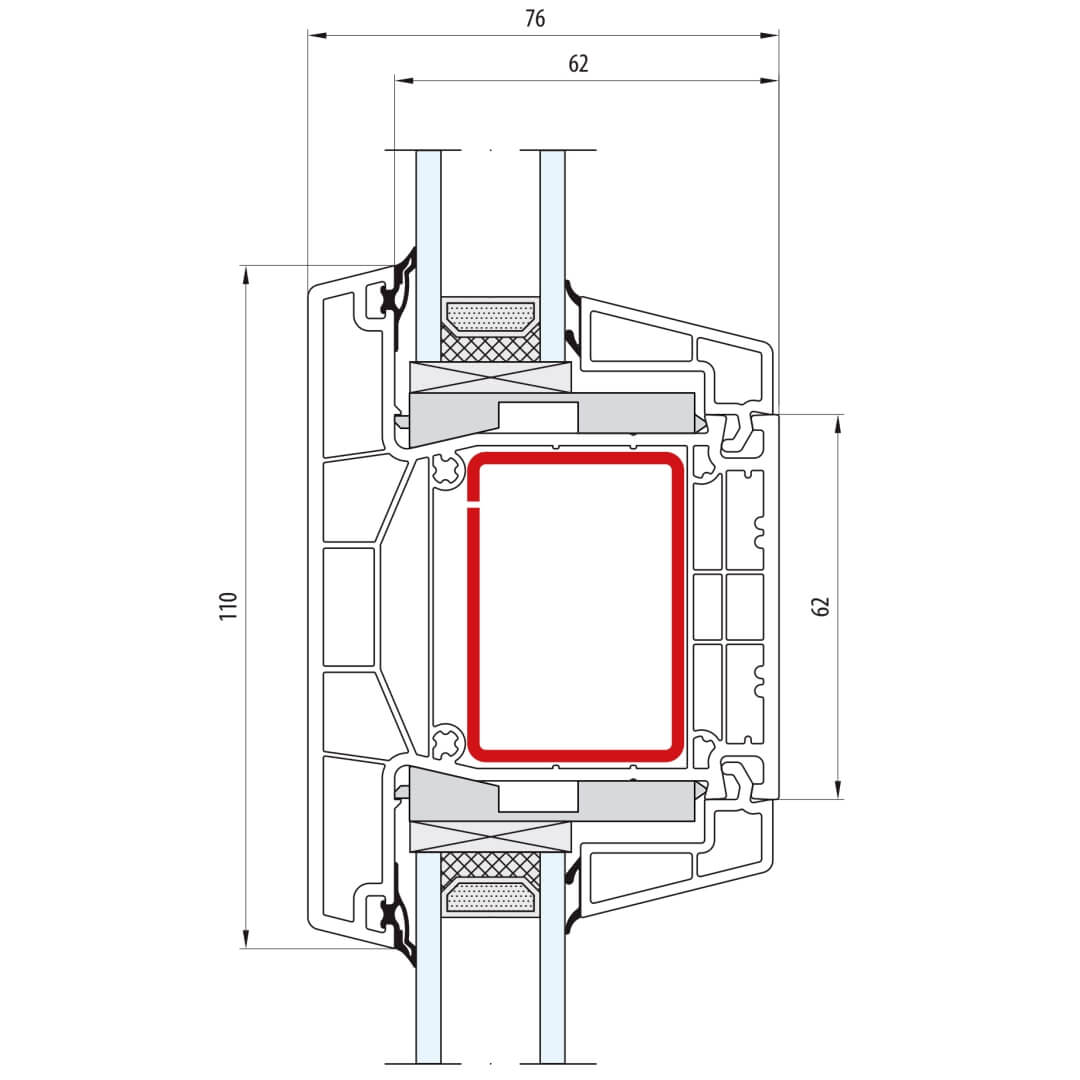 greenEvolution 76 AD Pfosten 110mm Fenster CL - 762009 - 761002