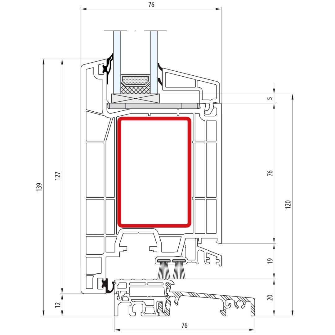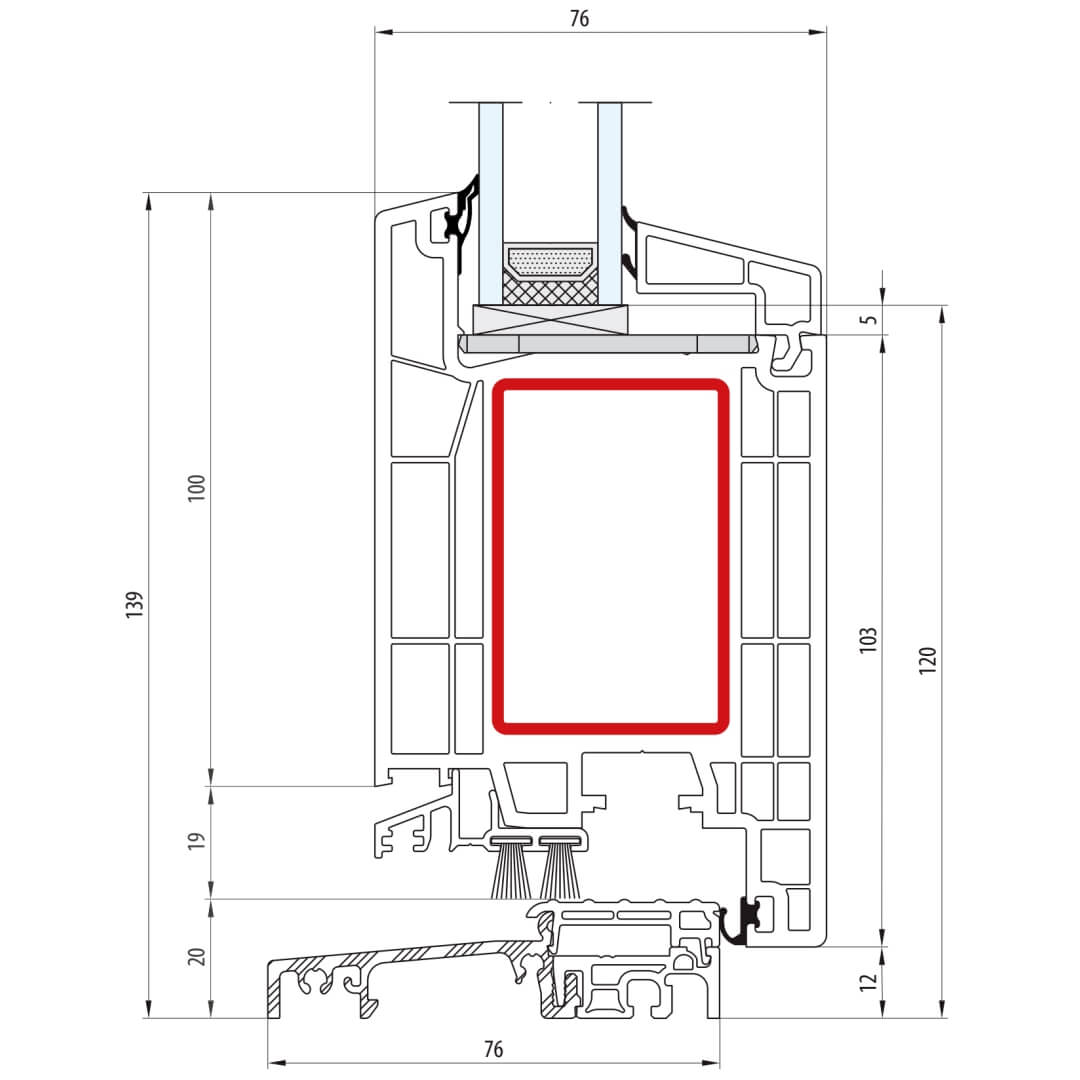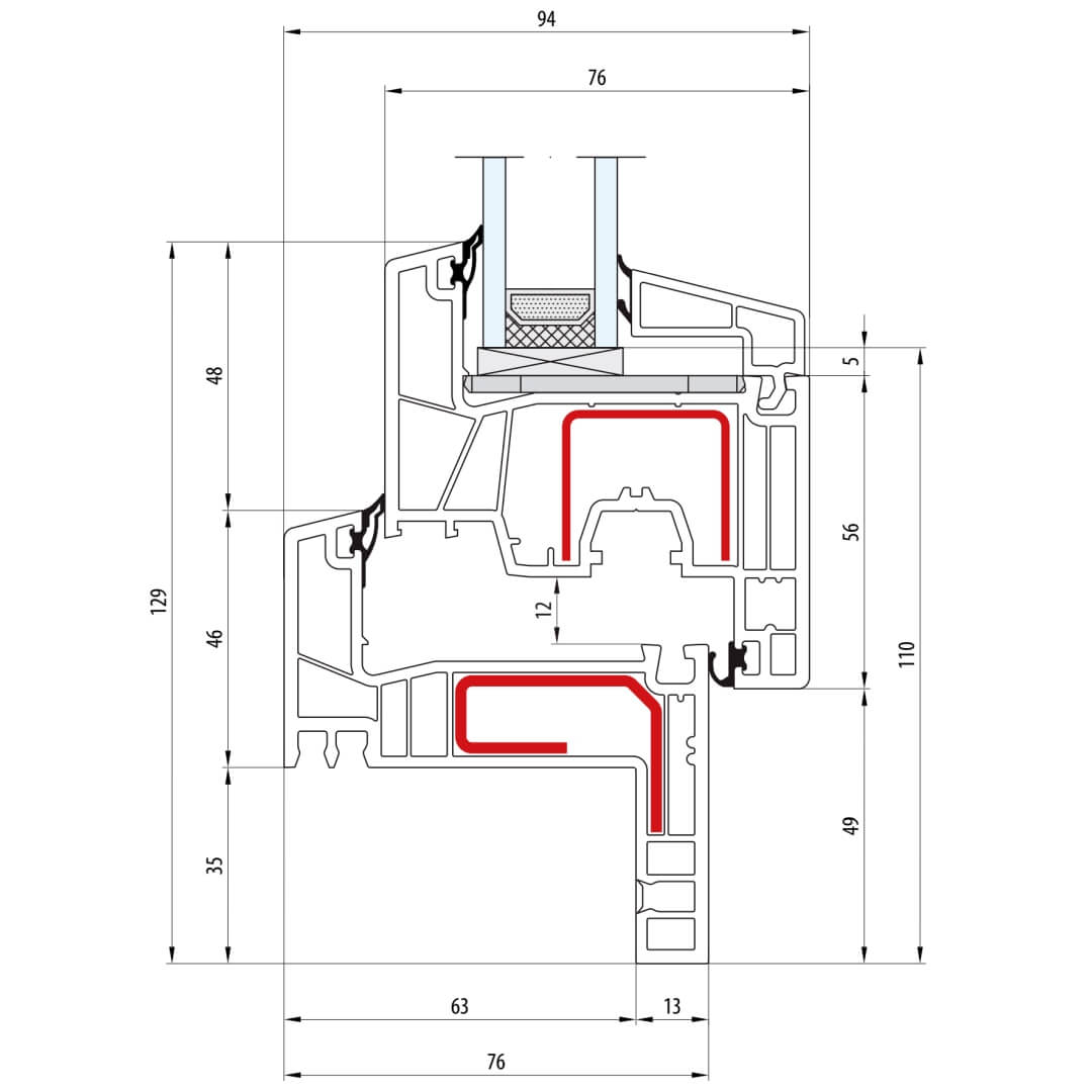 greenEvolution 76 AD Pfosten 110mm Fenster CL - 762009 - 761002