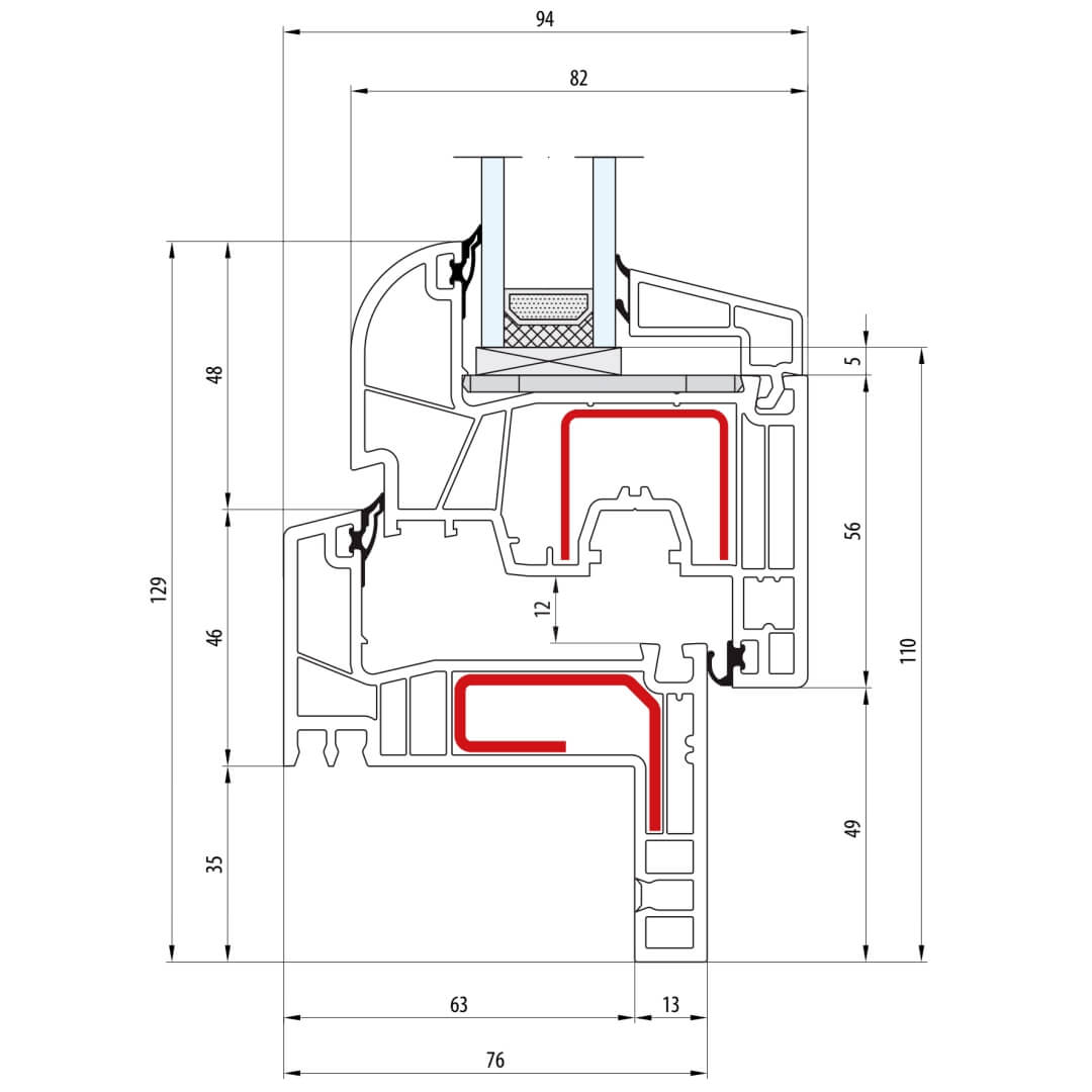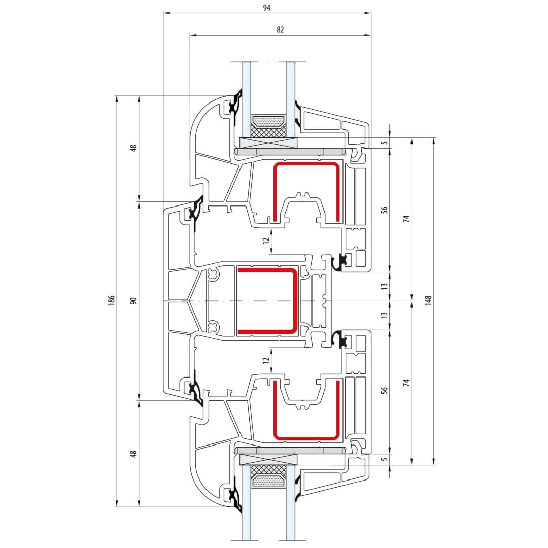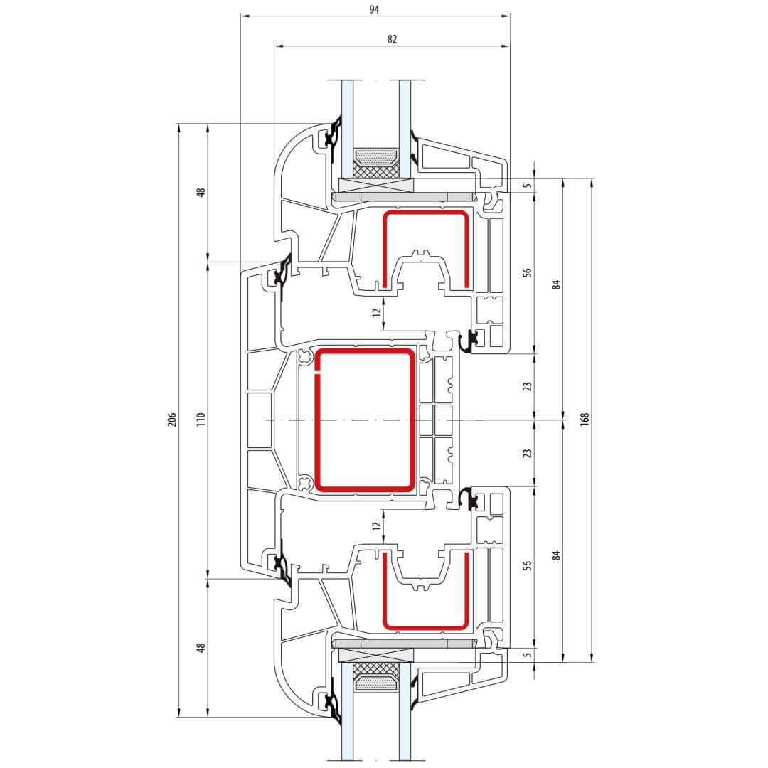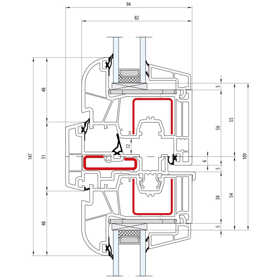 Kunststofffenster bluEvolution 82 besitzen eine Bautiefe (Rahmen) von 82mm.