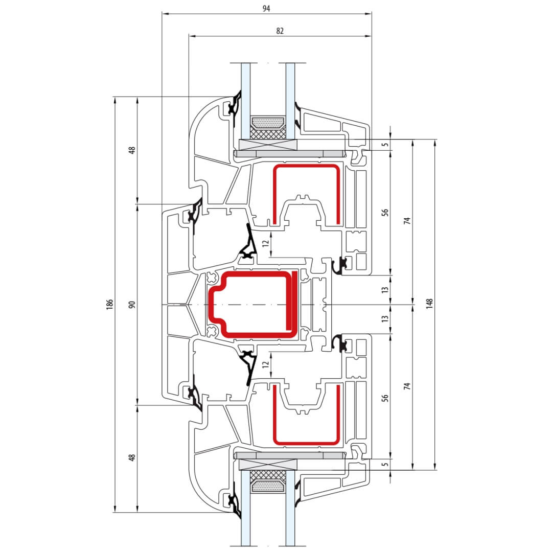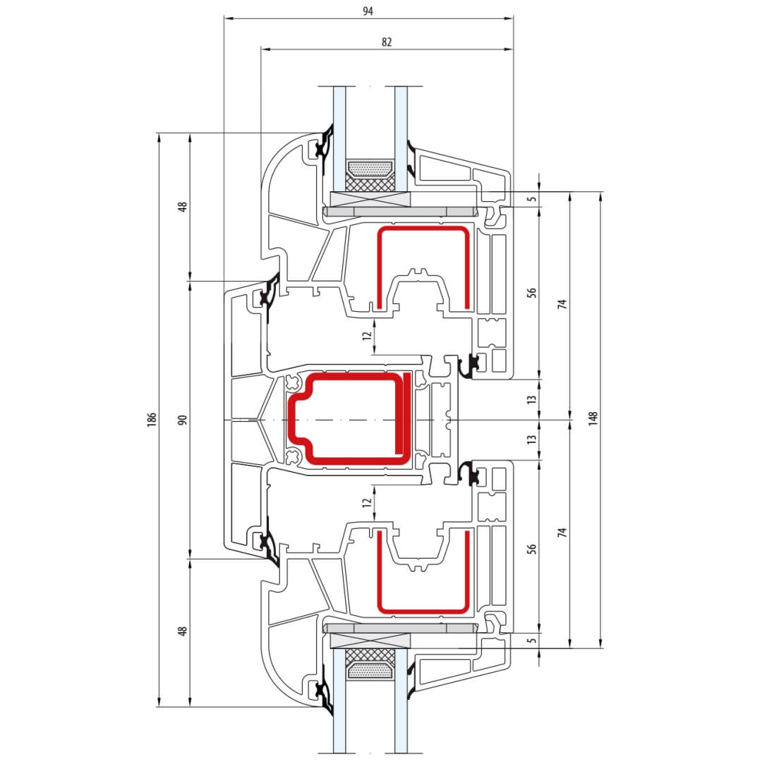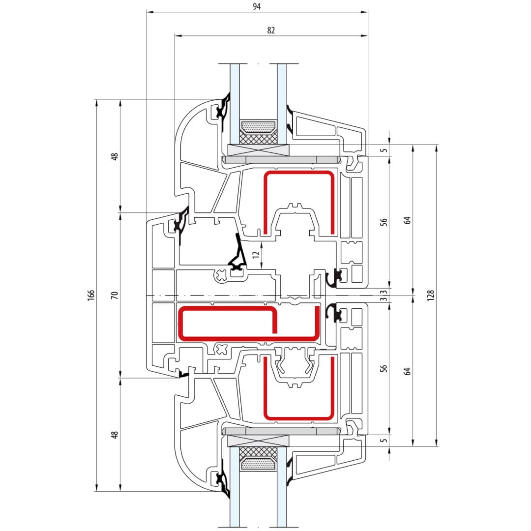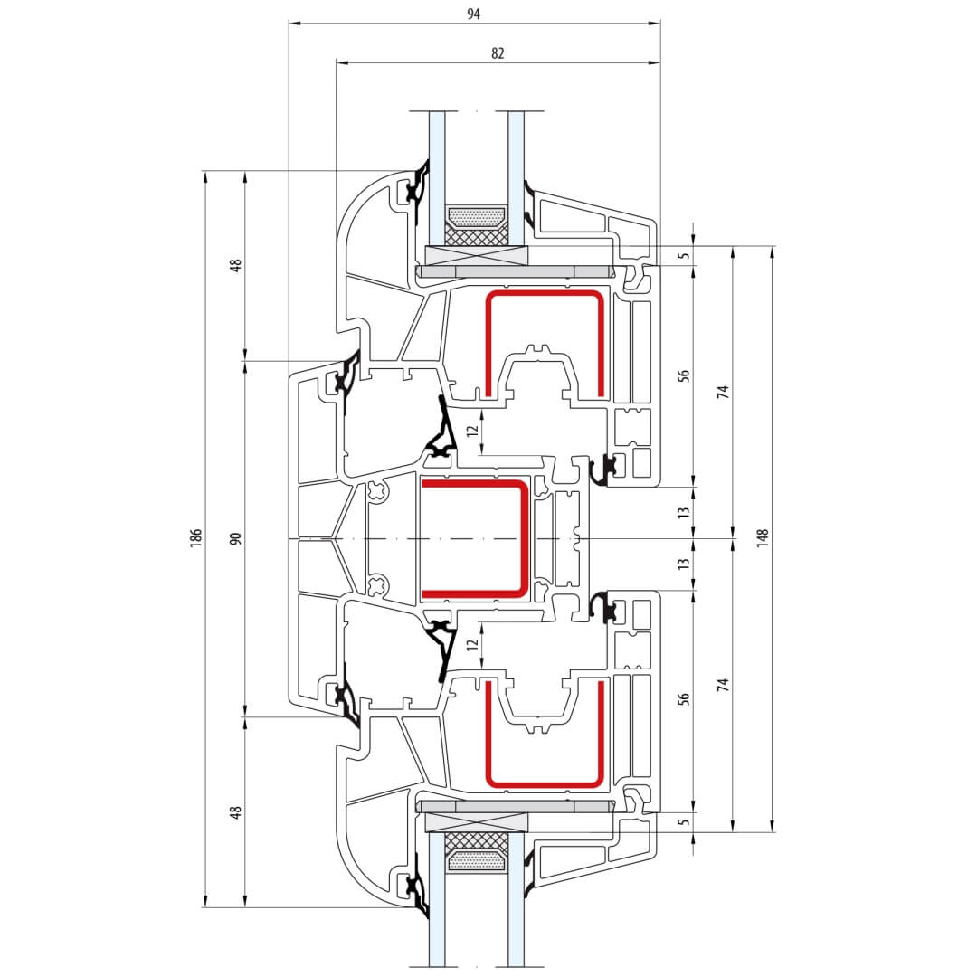 Kunststofffenster bluEvolution 82 besitzen eine Bautiefe (Rahmen) von 82mm.