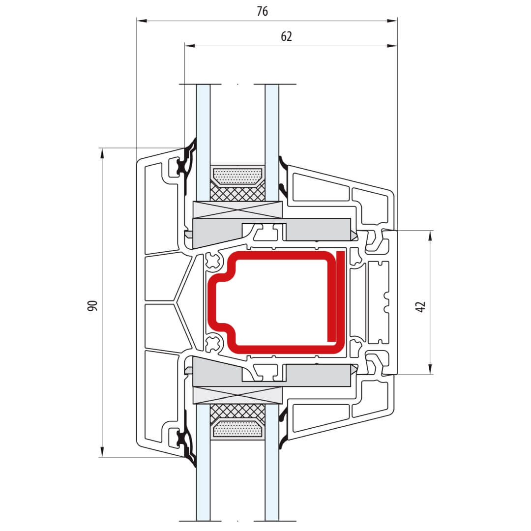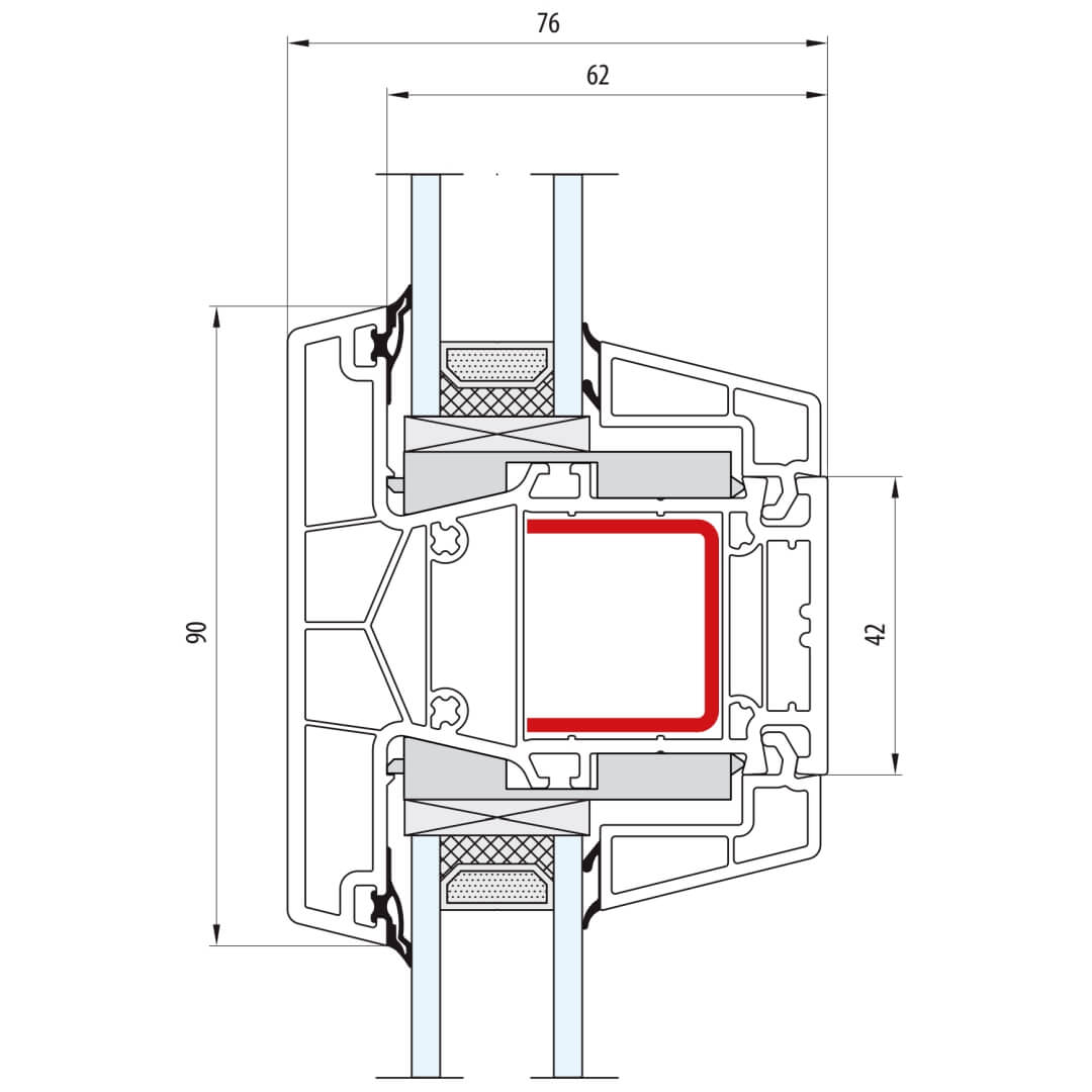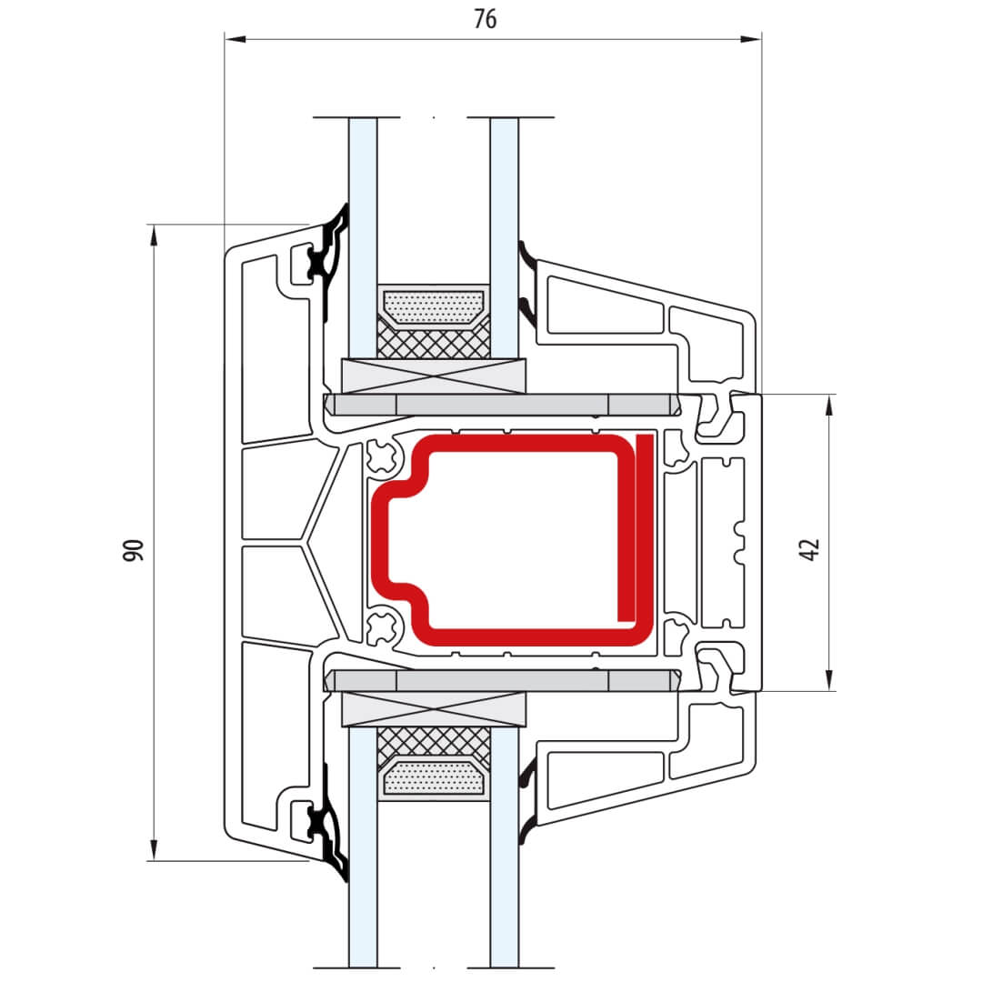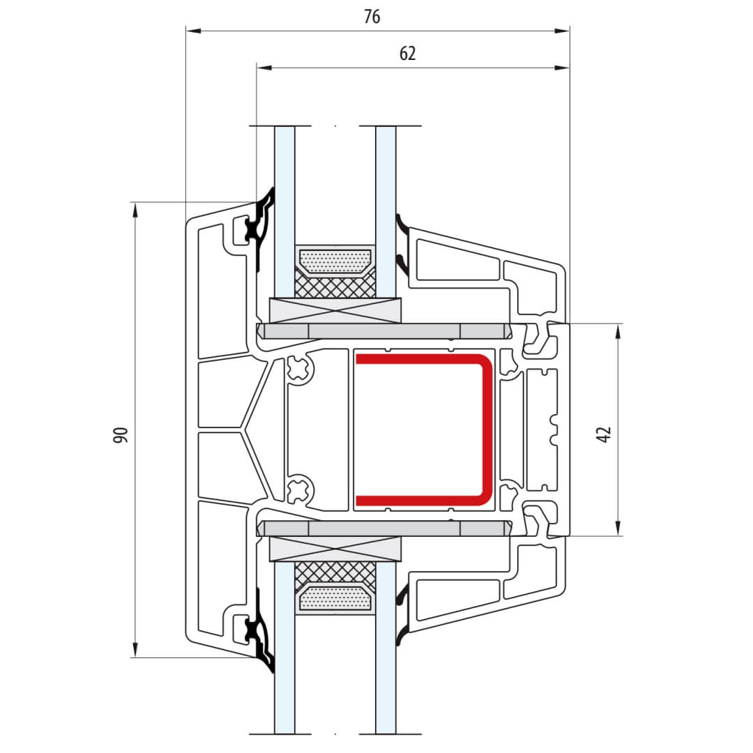greenEvolution 76 MD Pfosten 90mm mit Verstärkung Fenster CL - 762008 - 761002