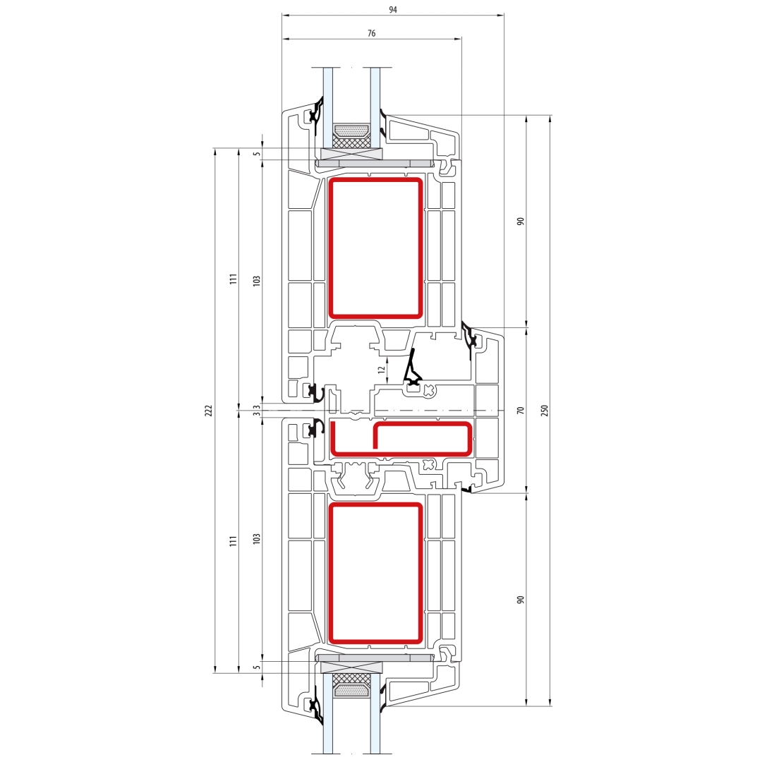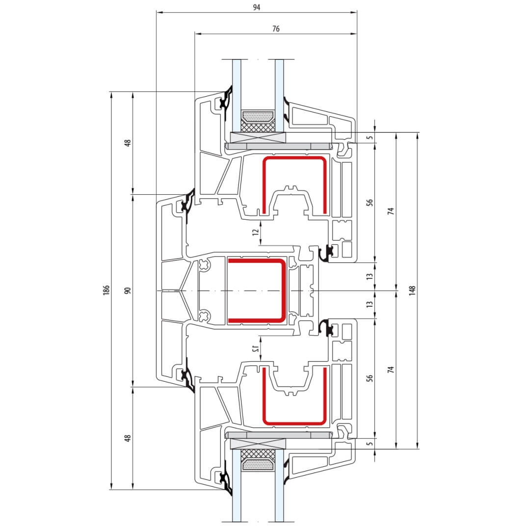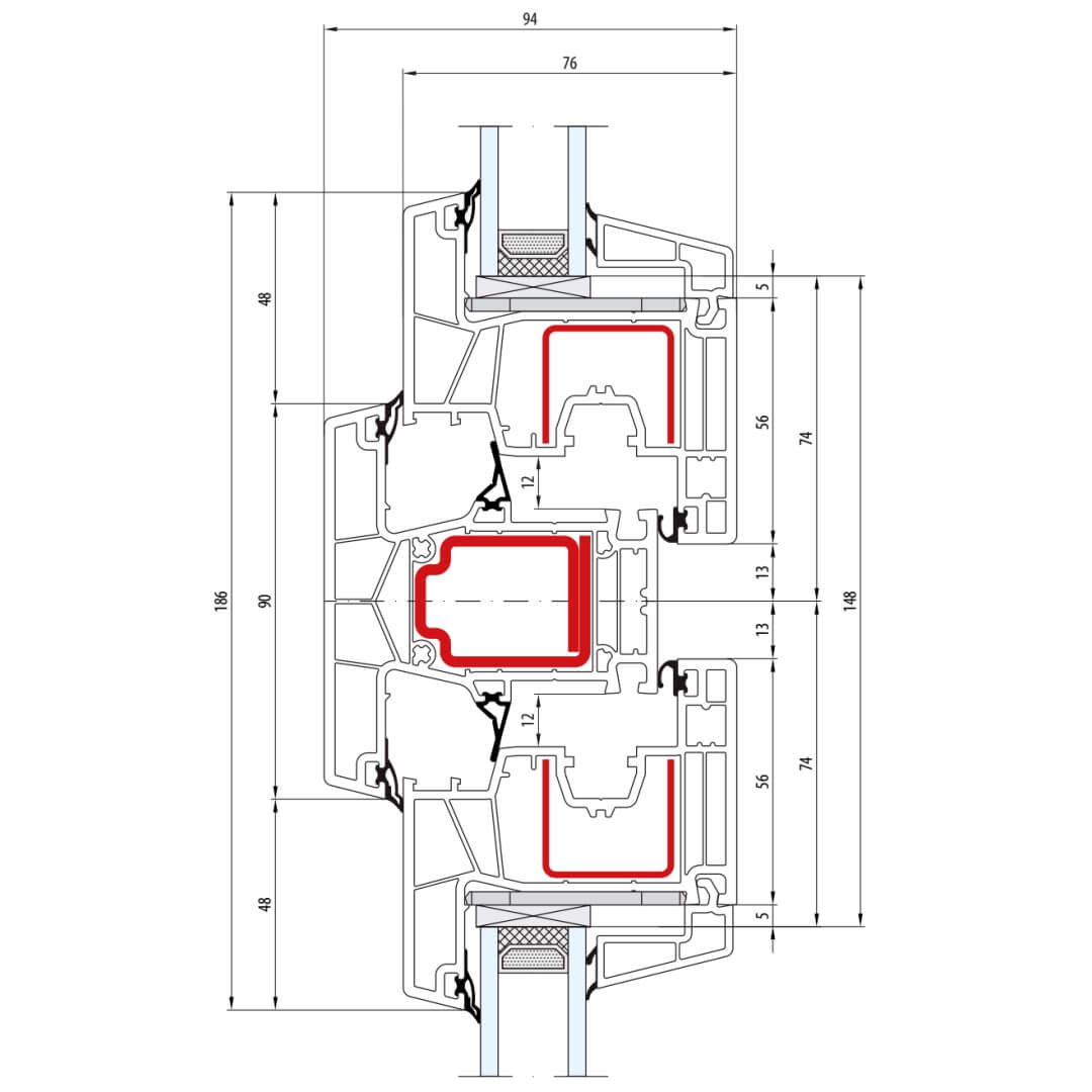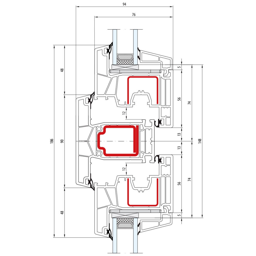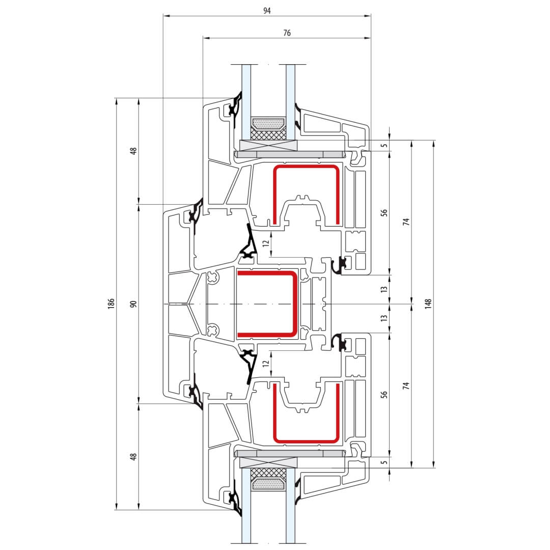 greenEvolution 76 MD Pfosten 90mm mit Verstärkung Fenster CL - 762008 - 761002
