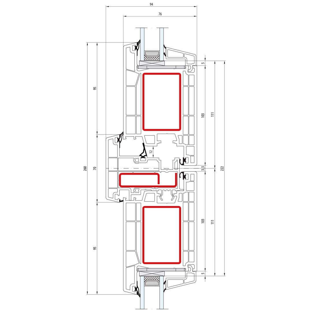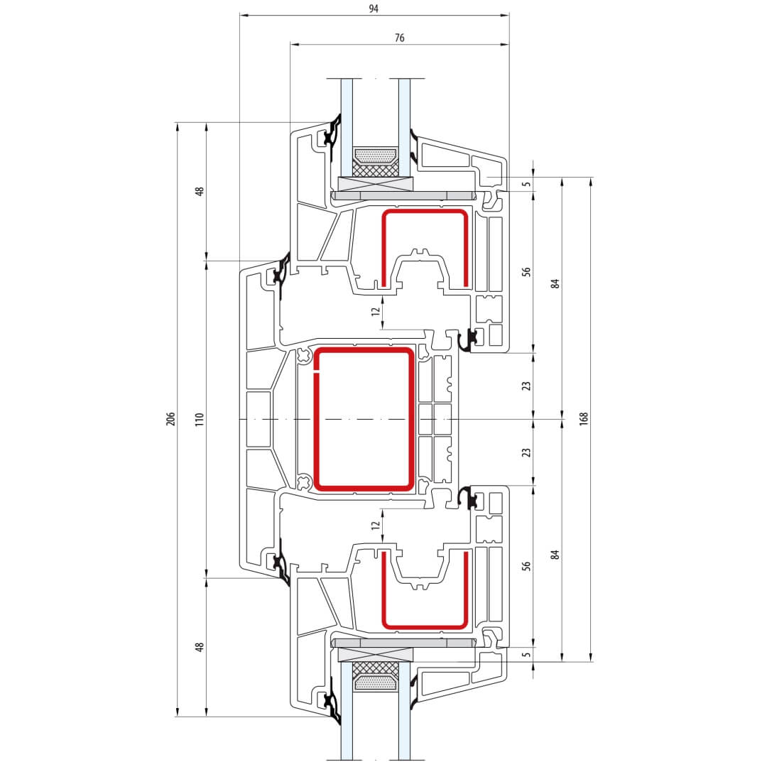 Kunststofffenster greenEvolution 76 AD mit Pfosten 110mm (Breit - Große Konstruktionen)