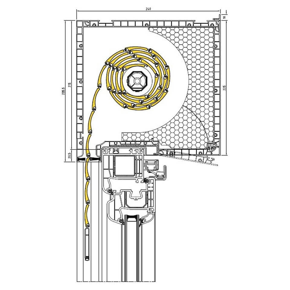 Führungsschiene mit variablen Eckverbinder 118° am Iglo Energy Profil