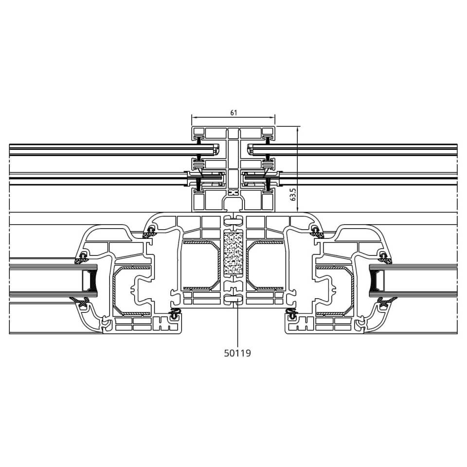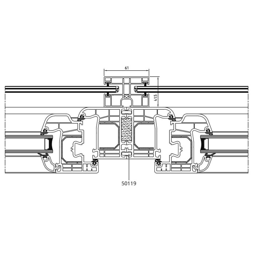 Beidseitige Führungsschiene mit Federkopplung 50119 am Iglo 5 Profil