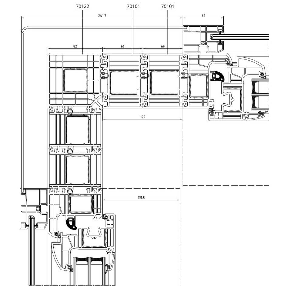 Führungsschiene mit variablen Eckverbinder 90° am Iglo 5 Profil