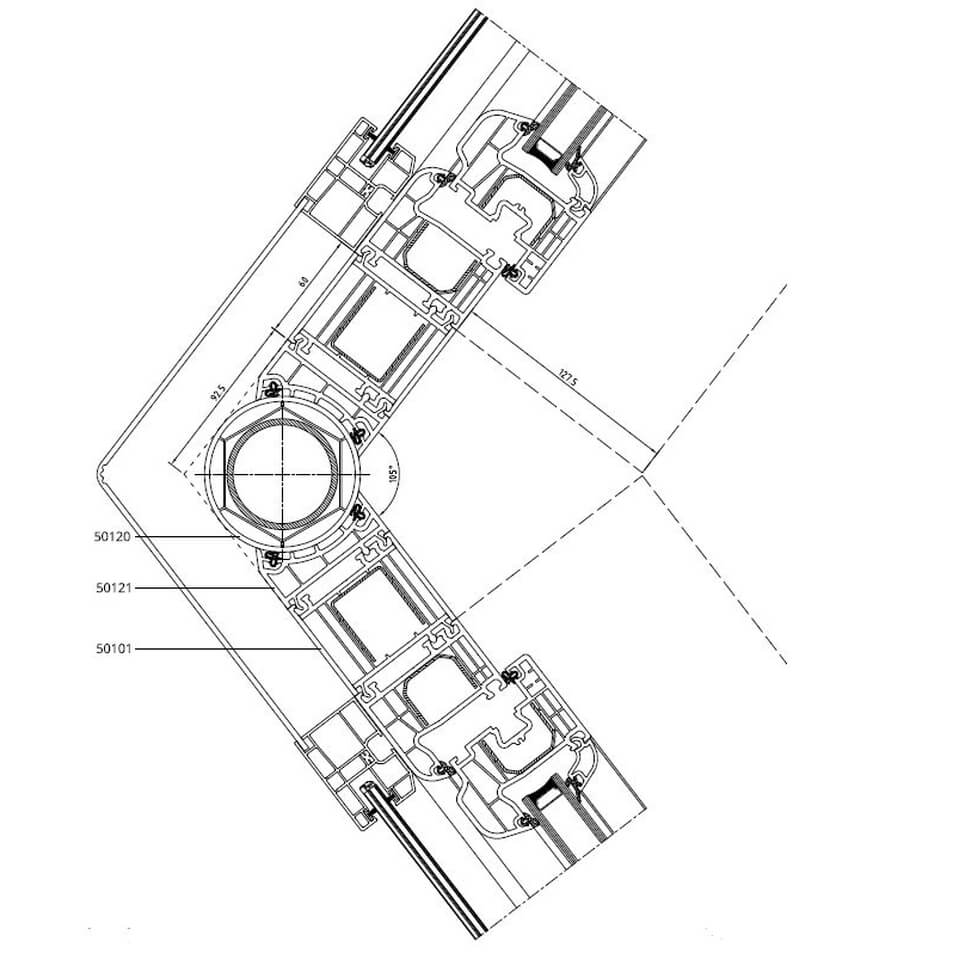 Führungsschiene mit variablen Eckverbinder 105° am Iglo 5 Profil
