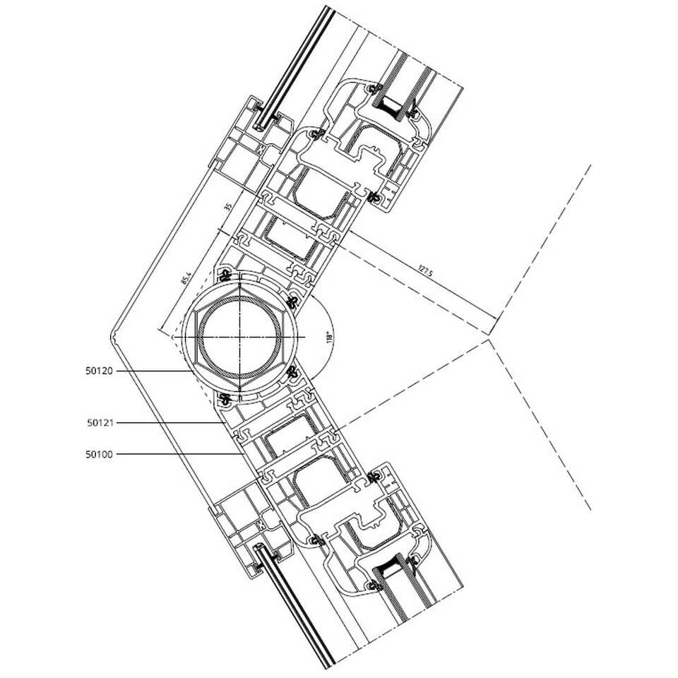 Führungsschiene mit variablen Eckverbinder 118° am Iglo 5 Profil