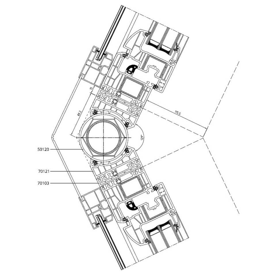 Führungsschiene mit variablen Eckverbinder 129° am Iglo 5 Profil