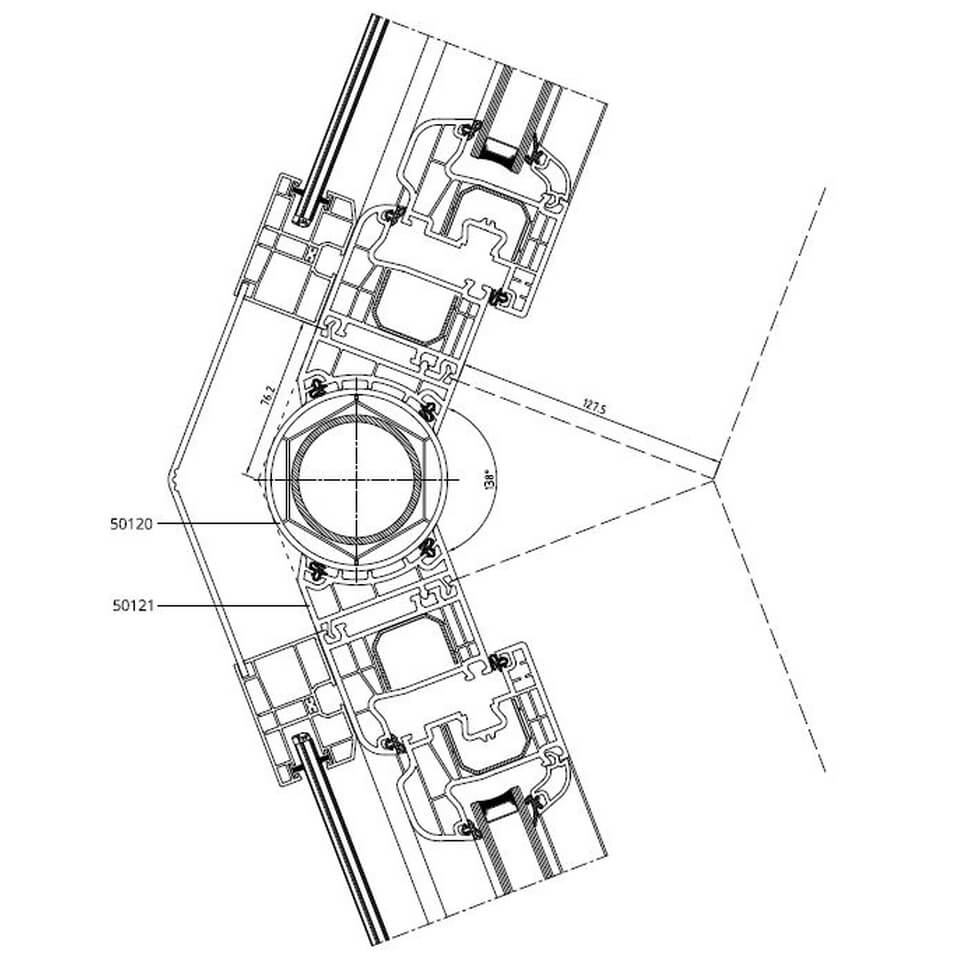 Führungsschiene mit variablen Eckverbinder 138° am Iglo 5 Profil