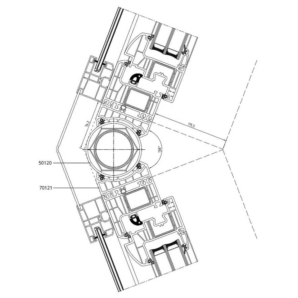 Führungsschiene mit variablen Eckverbinder 138° am Iglo Energy Profil