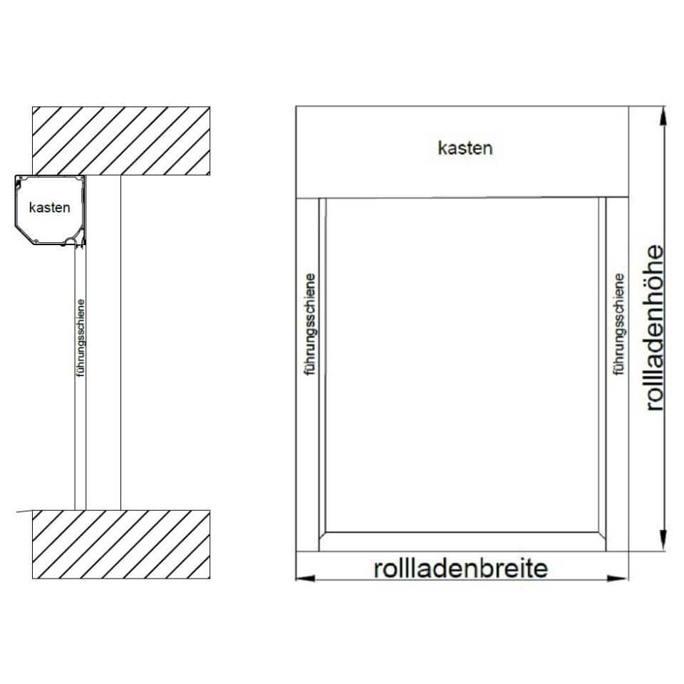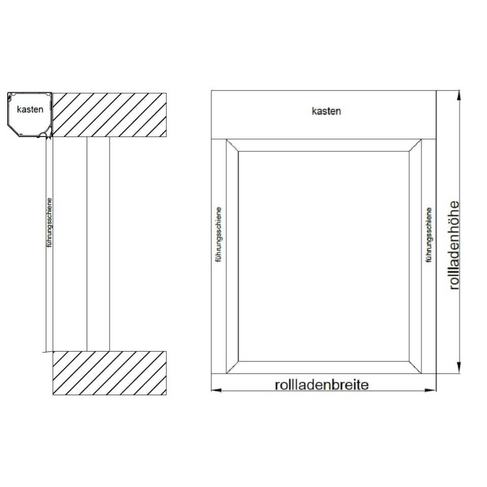 Vorbaurollladen Führungsschienen Position an Fenster Schema