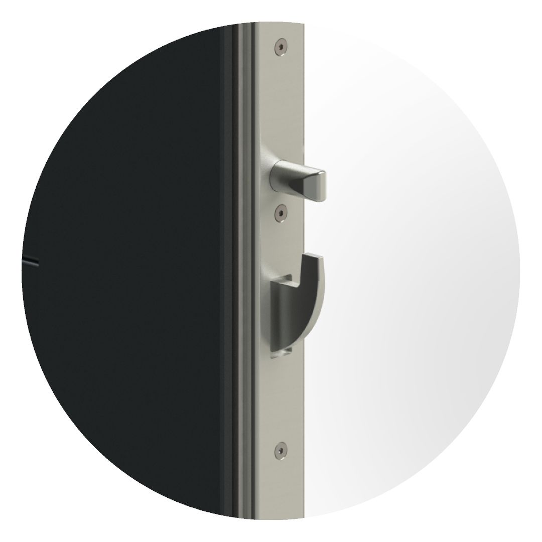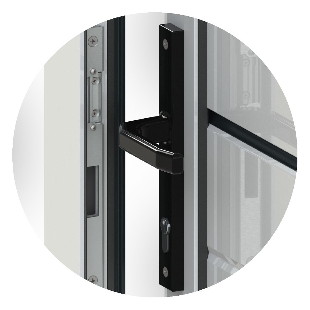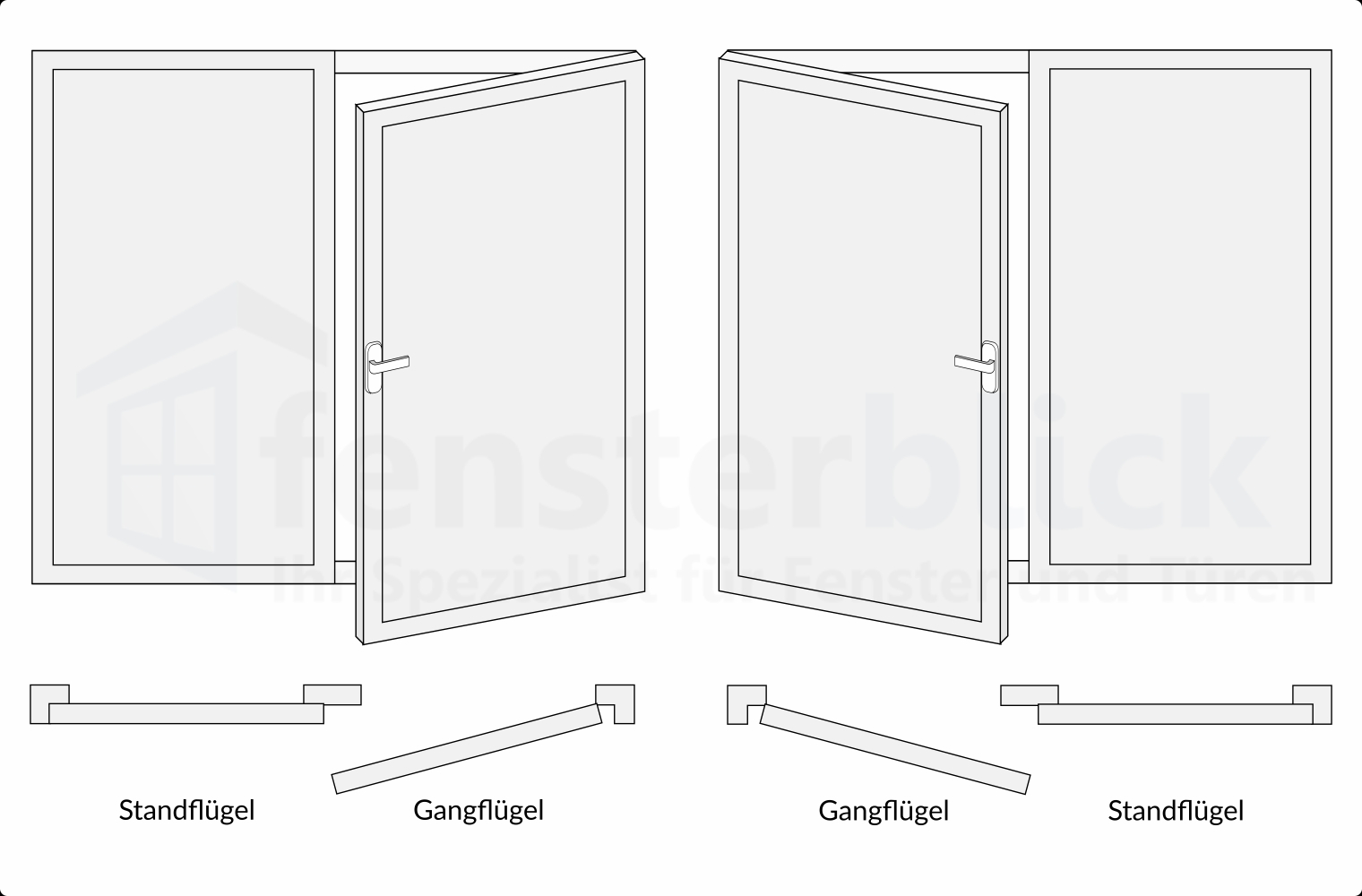 Aufgrund der Stulp-Ausführung müssen die beiden Flügel immer nacheinander geöffnet und geschlossen werden. Der Gehflügel setzt hierbei auf dem Falz des Stehflügels auf.