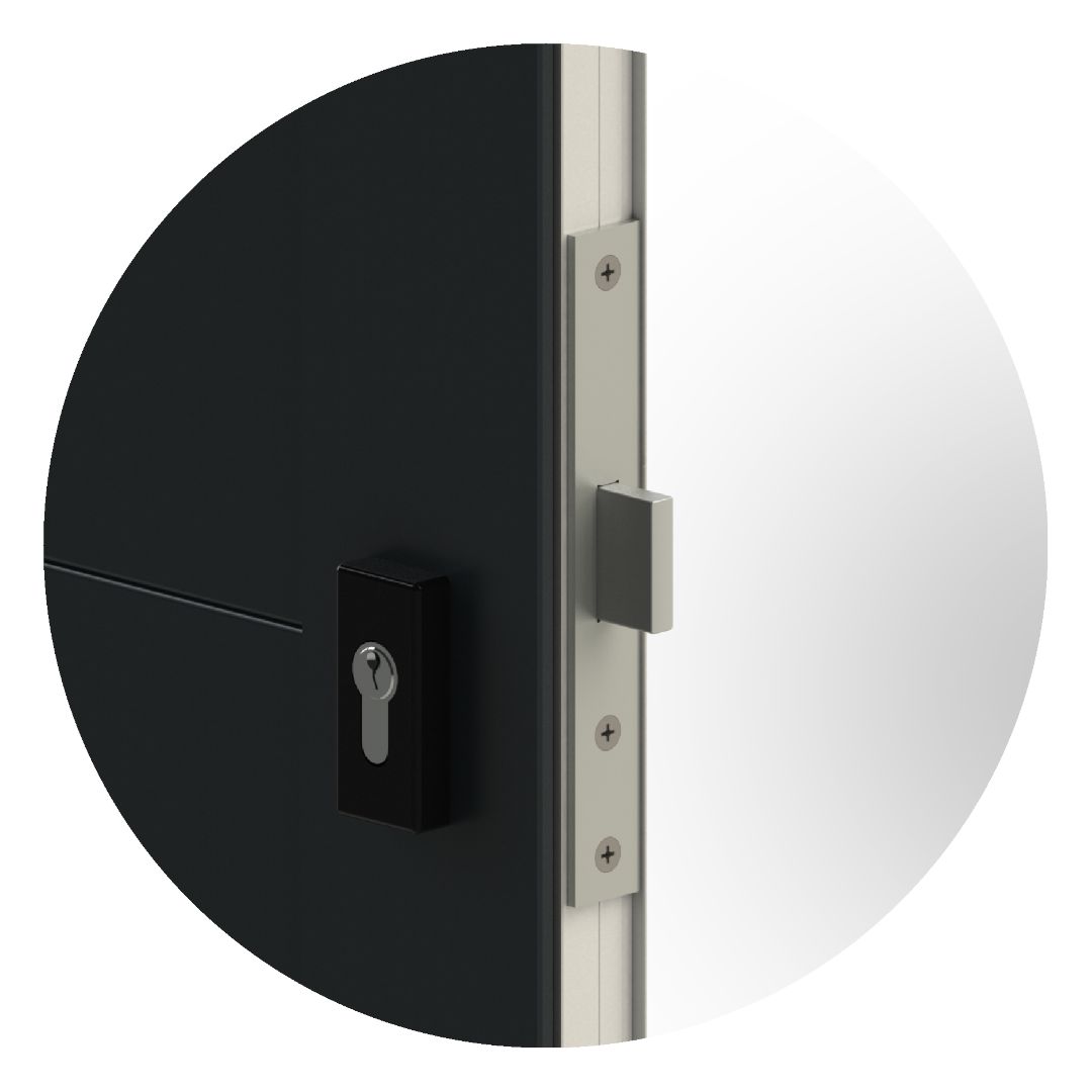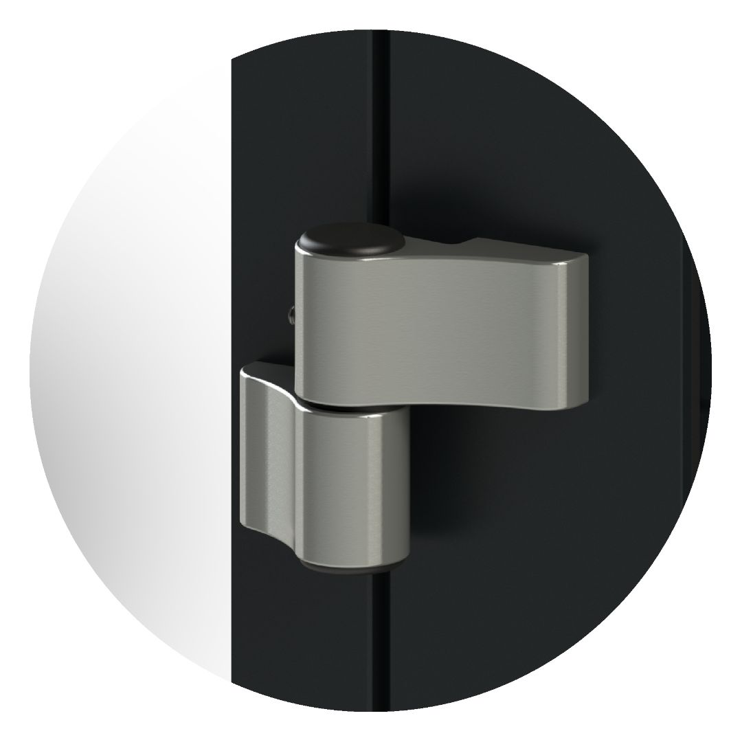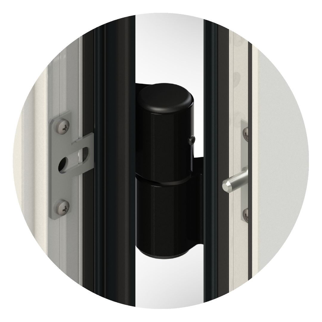 Aufgrund der Stulp-Ausführung müssen die beiden Flügel immer nacheinander geöffnet und geschlossen werden. Der Gehflügel setzt hierbei auf dem Falz des Stehflügels auf.