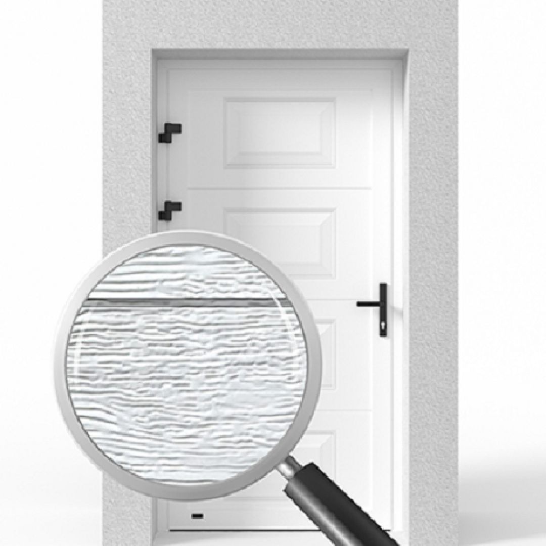 Nicht nur die Prägung der Garagen-Drehflügeltür kann an die Optik des Garagentors angepasst werden, sondern auch die Oberflächenbeschaffenheit. Zur Auswahl steht eine glatte Oberfläche (Slick) oder eine gemaserte Oberfläche (Woodgrain).