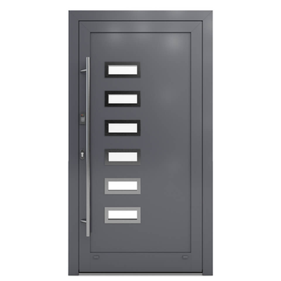 Bereiten Sie Ihren Gästen ein eindrucksvolles Willkommen mit der Haustür Lübeck! Die Aluminiumtür besitzt eine glatte Oberfläche mit sechs rechteckigen Glaseinsätzen, welche einen edlen und einladenden Eindruck vermitteln.