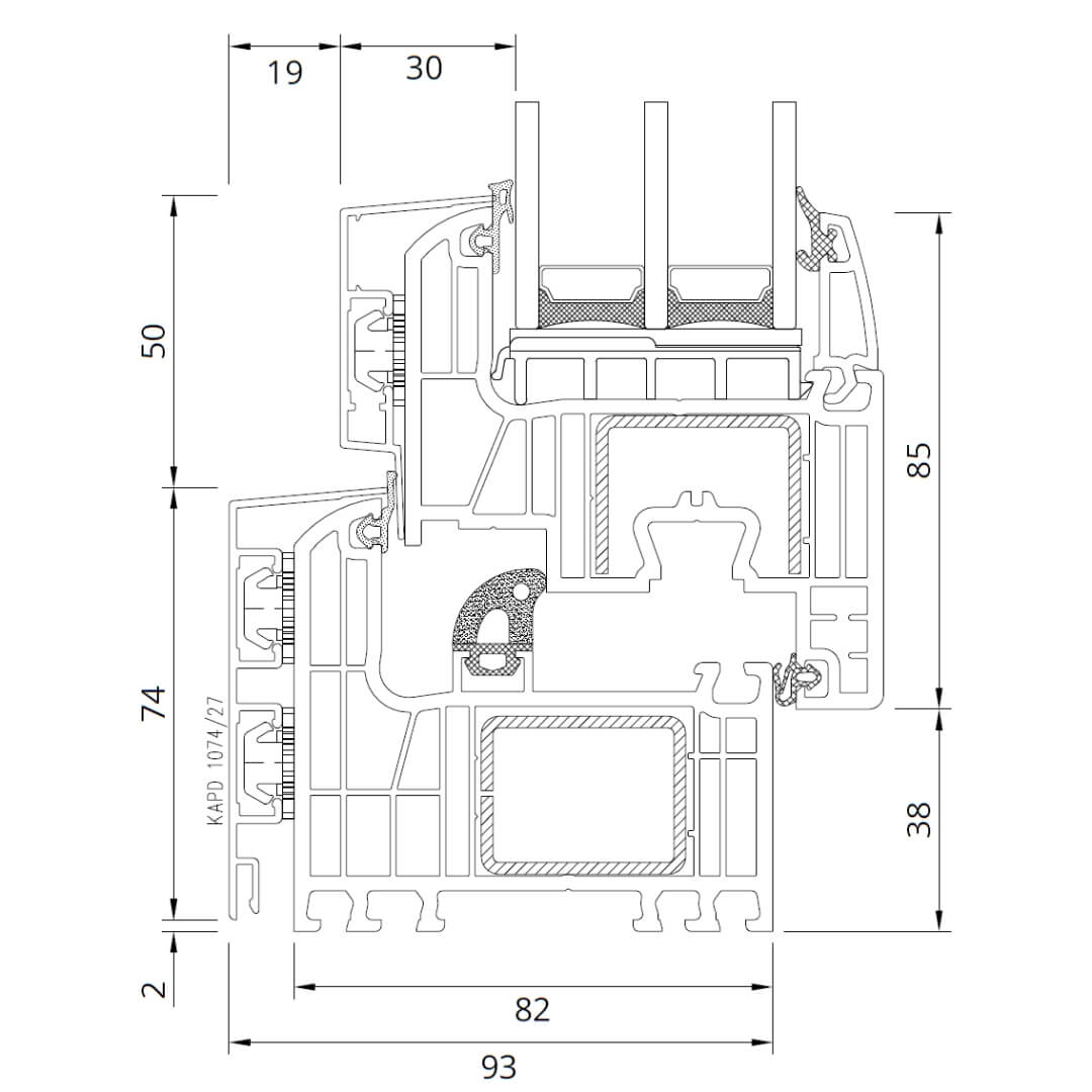 Die Kunststoffprofile verfügen über 3 Dichtungsebenen mit einer geschäumten Mitteldichtung (MD) aus EPDM.