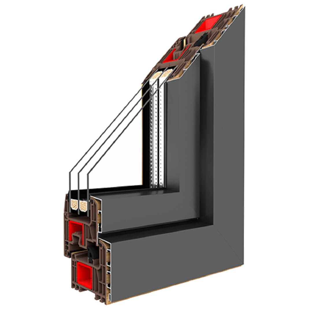 Iglo Energy AluCover Fenster vereinen modernes Design, erstklassige Qualität und herausragende Energieeffizienz. Das hochwertige Kunststoffprofil mit einer 7-Kammer-Struktur und 93mm Bautiefe wurde speziell für optimale Wärmedämmung entwickelt. Das innovative Dichtungssystem mit geschäumtem Elastomer (EPDM / Ethylen-Propylen-Dien-Kautschuk) als Mitteldichtung minimiert Wärmeverluste, reduziert Heizkosten im Winter und sorgt für angenehme Raumtemperaturen im Sommer. Sie haben zudem die Möglichkeit, die Fenster mit einer 3-fach oder sogar 4-fach Verglasung mit Warmer Kante auszustatten.