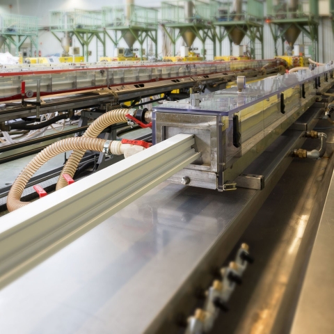 Dryblend-menginstallatie en een grote productielijn voor de extrusie van kunststofprofielen. Bovendien produceert DRUTEX intern hoogwaardige gelaagde glazen en veiligheidsglas. Hiervoor beschikt het bedrijf over een eigen glasoven, een moderne glas slijpmachine en een verhittingoven.
