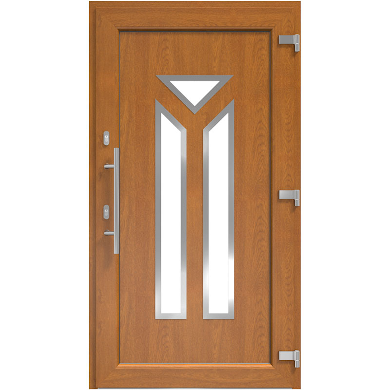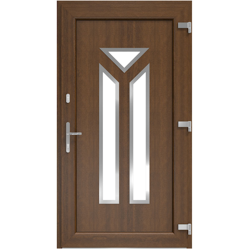 Das Kunststoff Haustür-Modell Münster punkten mit seinem geradlinigen Design, großflächigen Glasausschnitt inklusive Edelstahlapplikation von beiden Seiten und der vielfältigen Gestaltungsmöglichkeiten. Die hochwertigen Kunststofftürprofile bestehen aus Mehrkammerprofilen mit integrierter Stahlverstärkung sowohl im Blend- als auch im Flügelrahmen. Zur Auswahl steht neben dem Standardtürprofil Iglo 5 mit einer Bautiefe von 70mm das Energiesparprofil Iglo Energy mit einer Bautiefe von 82mm und innovativem Dichtungssystem für eine herausragende Wärmedämmung. Zusätzlich zur Standardfarbe Weiß stehen für die Kunststofftür Münster die Dekorfarben Anthrazit, Nussbaum und Golden Oak zur Auswahl. Passend zur individuellen Kunststoffhaustür gibt es eine breite Auswahl an Türbeschlägen von Innendrückern, über Drehknöpfen bis zu Stoßgriffen. Die Lieferung der Türen erfolgt auf Wunsch deutschlandweit.