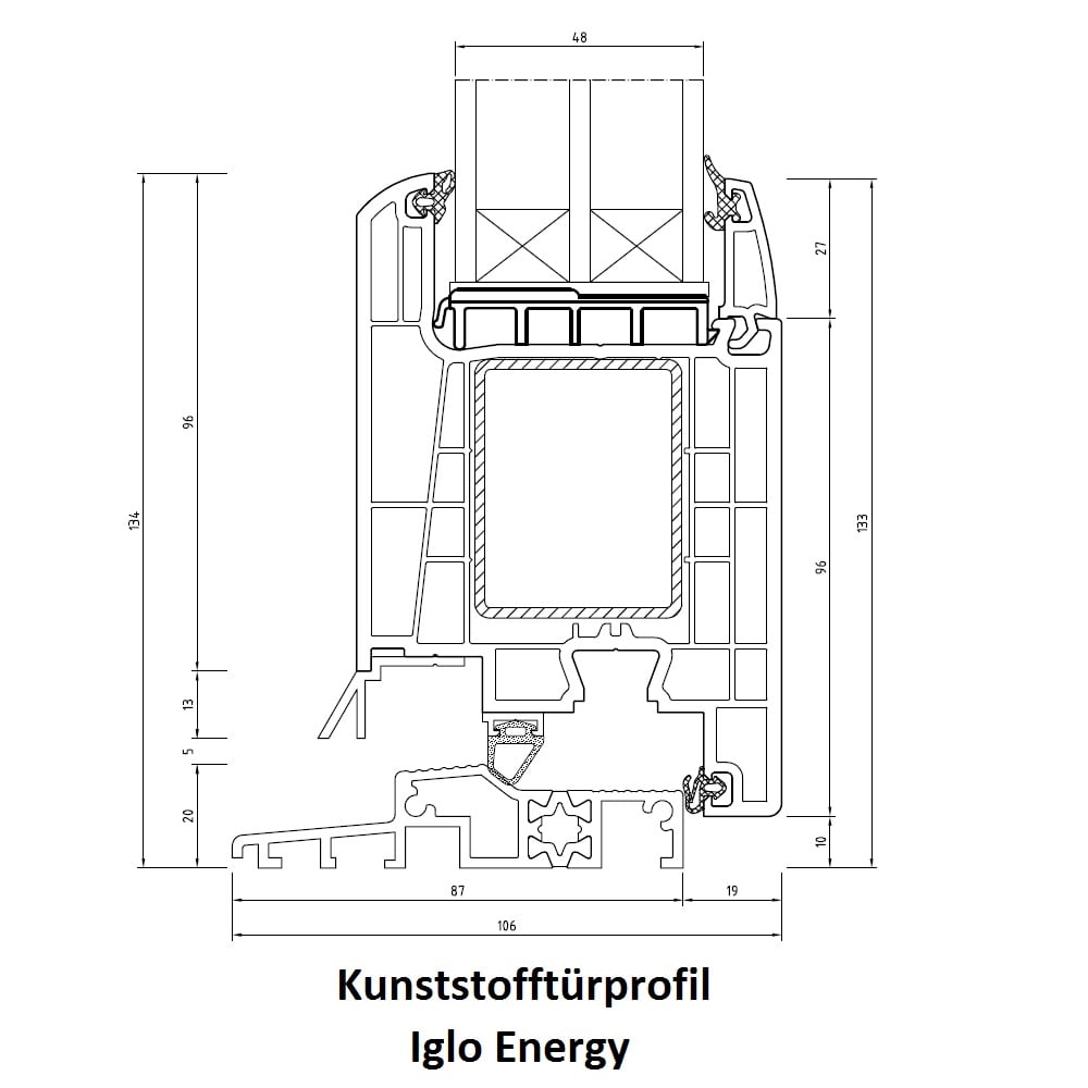 Für eine hervorragende Wärmedämmung werden die Kunststofftüren IGLO bereits in Standardausführung mit einer warmen Aluminiumschwelle mit thermischen Trennblatt ausgestattet. Hierdurch wird vor allem der Wärmeverlust der Türen verringert.