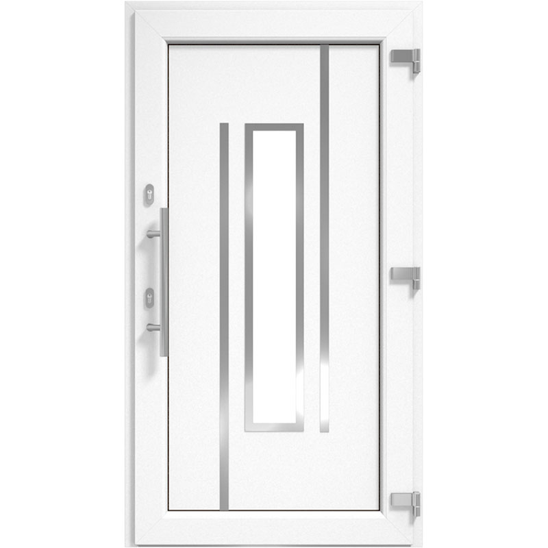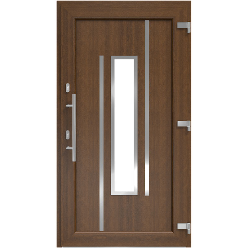 Nur ein kurzer Blick auf die Eingangsstüre entscheidet häufig darüber, wie das gesamte Haus wahrgenommen wird. Mit der hochwertigen DRUTEX Haustür Modell Dresden aus Kunststoff sind Sie immer auf der sicheren Seite. Das zentriert eingesetzte Glas und die einrahmenden Aluminiumstreifen erzeugen eine besonders elegante Ästhetik, welcher durch 4 Dekorfarben noch eine individuelle Note hinzugefügt werden kann. Das Mehrkammerprofil mit integrierter Stahlverstärkung geben dem Modell Dresden die nötige Stabilität und Festigkeit. Doppelte oder sogar 3-fach-Dichtungssysteme von bester Qualität gewährleisten in Verbindung mit dem Mehrkammersystem eine optimale Energieeffizienz. Ausgezeichnete MACO-Sicherheitsbeschläge sorgen für die nötige Sicherheit mit 3-facher Haken-Bolz-Verriegelung oder automatischer 3-fach Verrieglung. Auf Wunsch bieten wir auch eine 5-fach Verriegelung an.