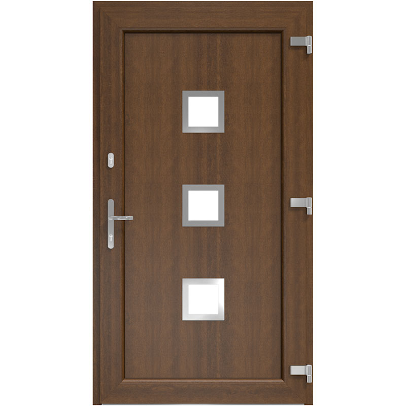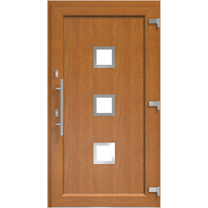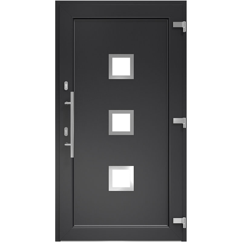 Die Eingangstür ist das Aushängeschild eines jeden Hauses. Daher spielen besonders die Aspekte, Qualität und Optik eine große Rolle. Das Haustür-Modell Wuppertal besitzt ein gradliniges, schlichtes Design mit drei umrahmten Glasflächen. Markensicherheitsbeschläge mit 3-facher Haken-Bolzen-Verrieglung, automatischer 3-fach Verriegelung oder 5-fach Verriegelung bieten hohen Schutz vor Einbrüchen und geben Sicherheit. Die Mehr-Kammerprofile bewirken eine hervorragende Wärmeisolation und werden durch ein innovatives EPDM-Dichtungssystem unterstützt. Für die individuelle Note können aus einem Farbportfolio die gewünschte Farbe und passende Türgriffe ausgewählt werden. So entsteht ein einzigartiges und unverwechselbares Design.