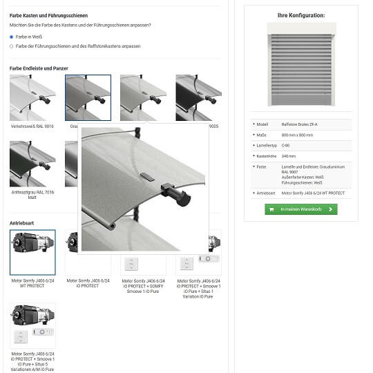 Um die Auswahl und Kostenkalkulation zu erleichtern, bietet unser Onlineshop einen Konfigurator an. Dieser ermöglicht die individuelle Anpassung und Echtzeitberechnung der Kosten. Wählen Sie aus verschiedenen Materialien, Farben, Antriebssystemen und Zusatzfunktionen, um die perfekte Lösung zu finden. Unser Konfigurator bietet eine transparente Kostenübersicht für eine optimale Planung.