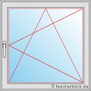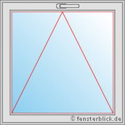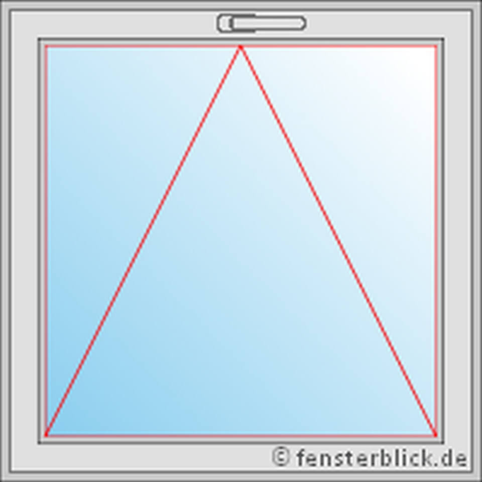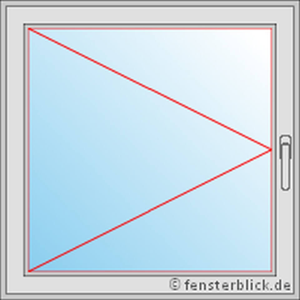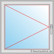 Ook dit raam beschikt uitsluitend over een draaifunctie, waarmee de vleugel volledig naar rechts kan worden geopend. De raamgreep bevindt zich aan de linkerzijde van het kozijn aan de binnenkant van de ruimte, bij de punt van de open driehoek. Het kantelen van de vleugel is niet mogelijk.