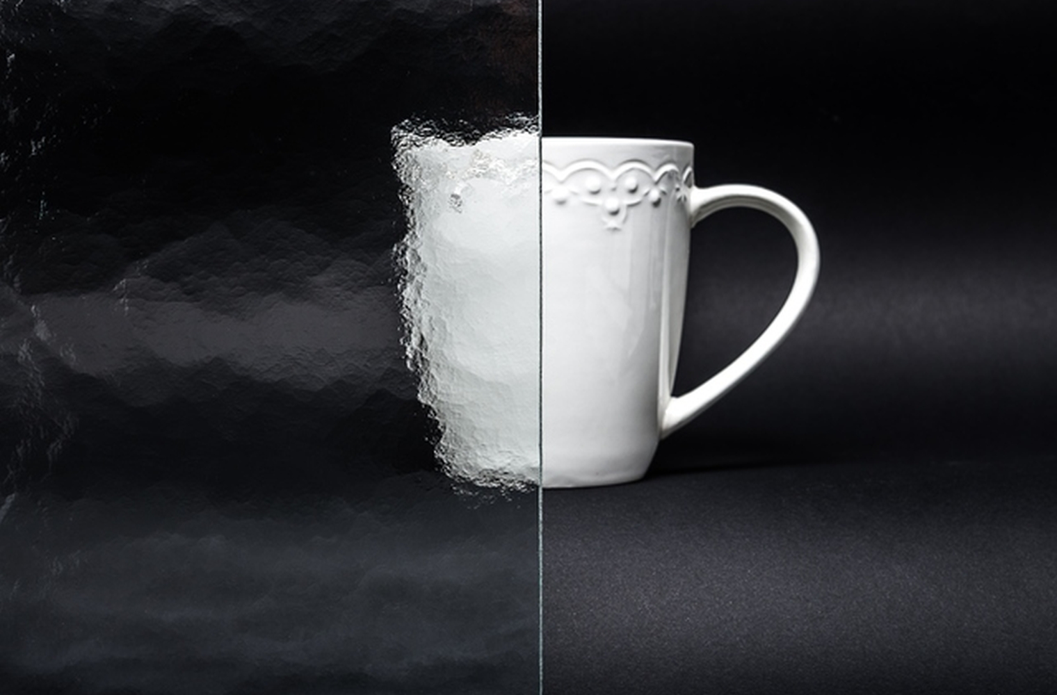 Das Ornamentglas Silvit erinner an einen natürlichen Wasserverlauf und hat eine entspannende Wirkung.