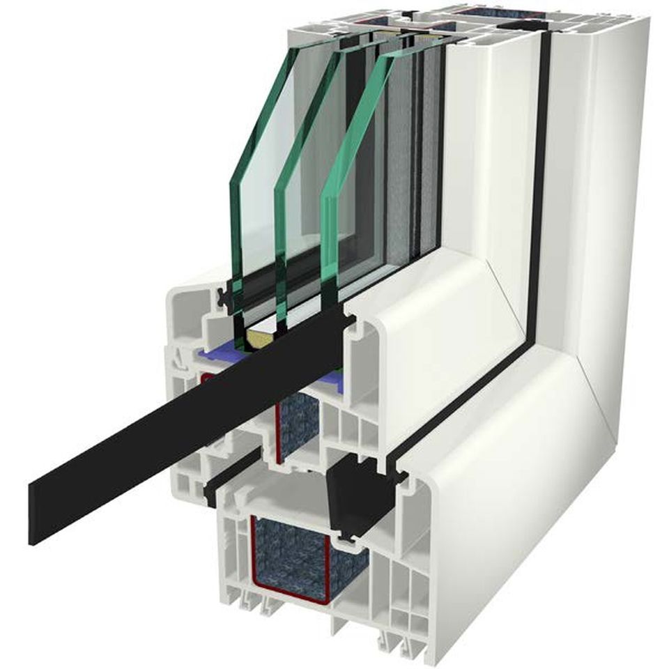 Hoge kwaliteit 6-kamersysteem met een inbouwdiepte van 82,5 mm voor uitstekende warmte-isolatie en veiligheid. Grote versterkingskamer met stalen wapening.
