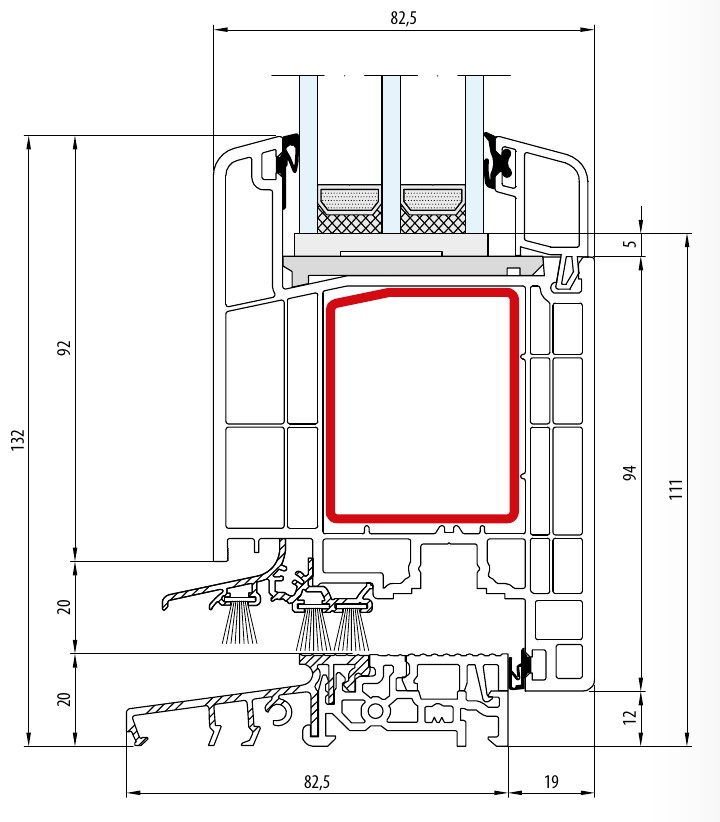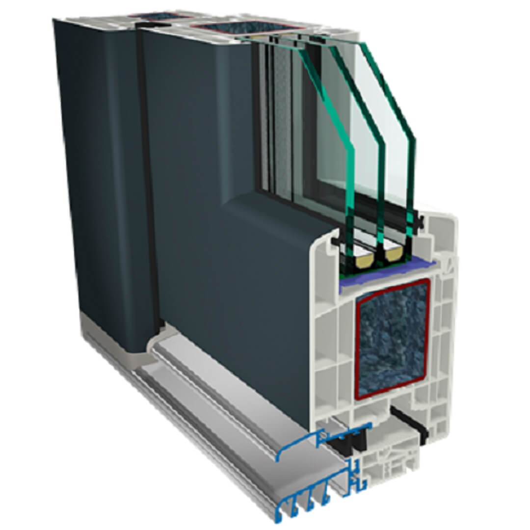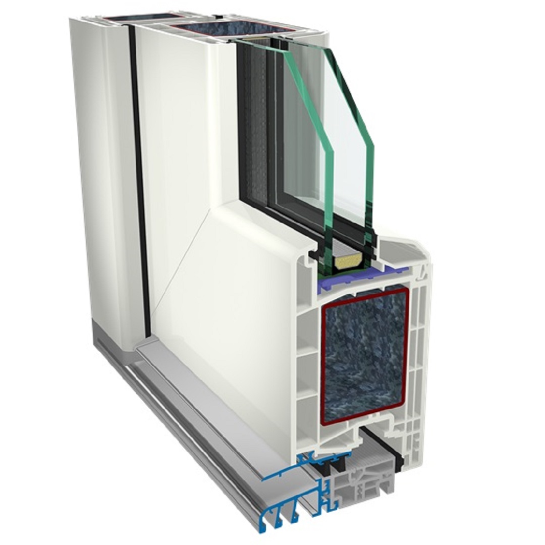 De stabiliteit wordt verhoogd door een grote stijfheidskamer, op maat gemaakte staalversterkingen, geschikte hoekversterkingen en een stevige verbinding in het gebied van de bodemdrempel door het vergrendelen van PVC- en aluminiumdelen in twee lagen.