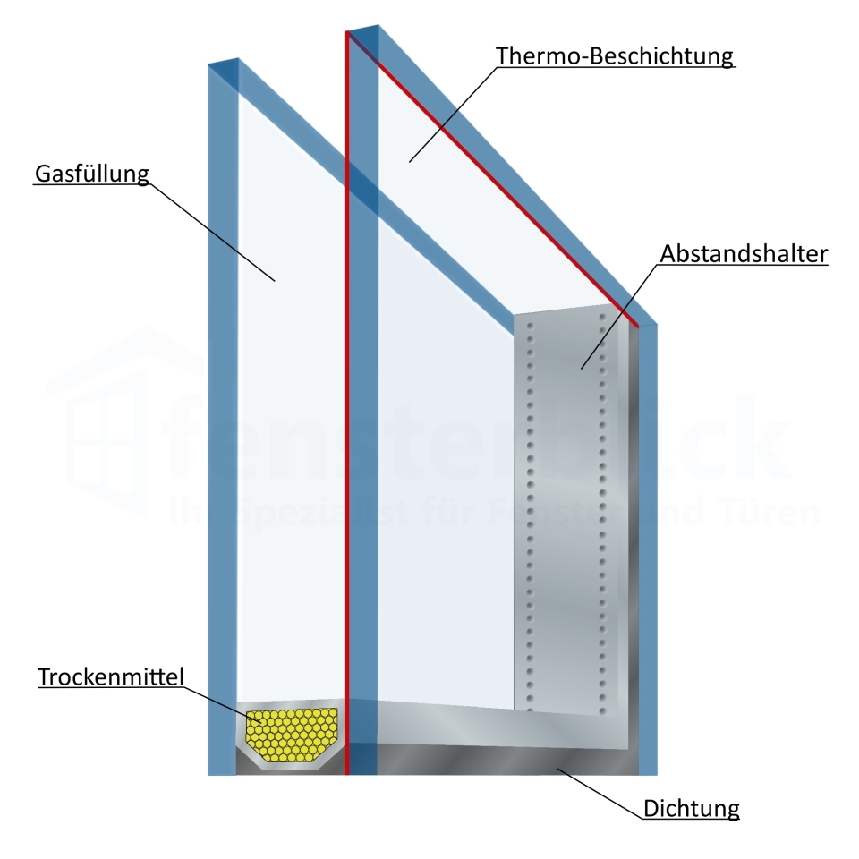 Ein modernes Fenster besteht heute aus einer Mehrfachverglasung. Je nach Wunsch können 2-fach, 3-fach und 4-fach Verglasungen vom gewünschten Hersteller bestellt werden. Der Scheibenabstand beschreibt den Abstand der einzelnen Glasscheiben zueinander.